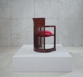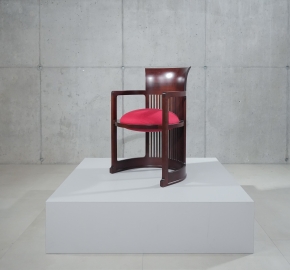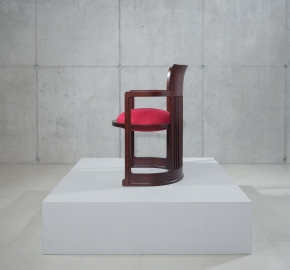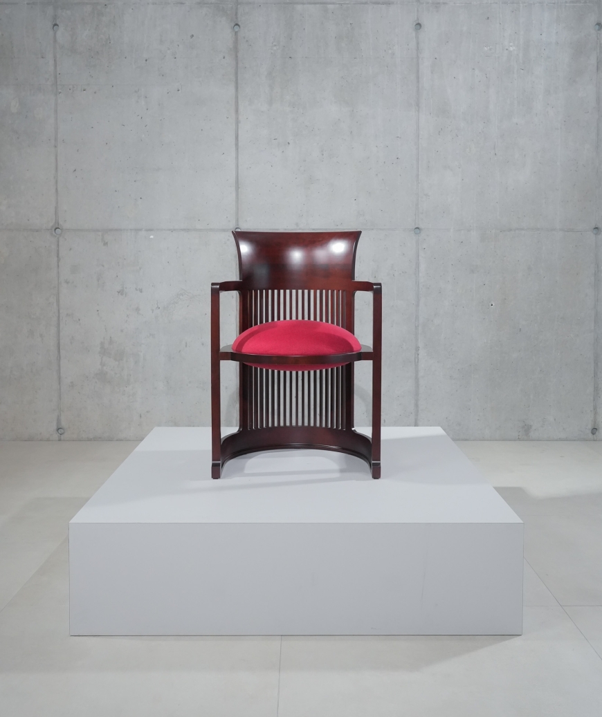 De 606 Barrel Chair, oorspronkelijk ontworpen in 1937 door Frank Lloyd Wright, is een iconisch meubelstuk dat vakmanschap en architectonisch inzicht combineert. De stoel heeft een karakteristieke gebogen rugleuning en armleuningen die samen een harmonieuze, tonvormige structuur vormen. De constructie bestaat uit 37 nauwkeurig passende onderdelen, wat getuigt van uitzonderlijk vakmanschap. Deze stoel is een heruitgave van een ontwerp uit 1904 en wordt sinds 1986 geproduceerd door Cassina.