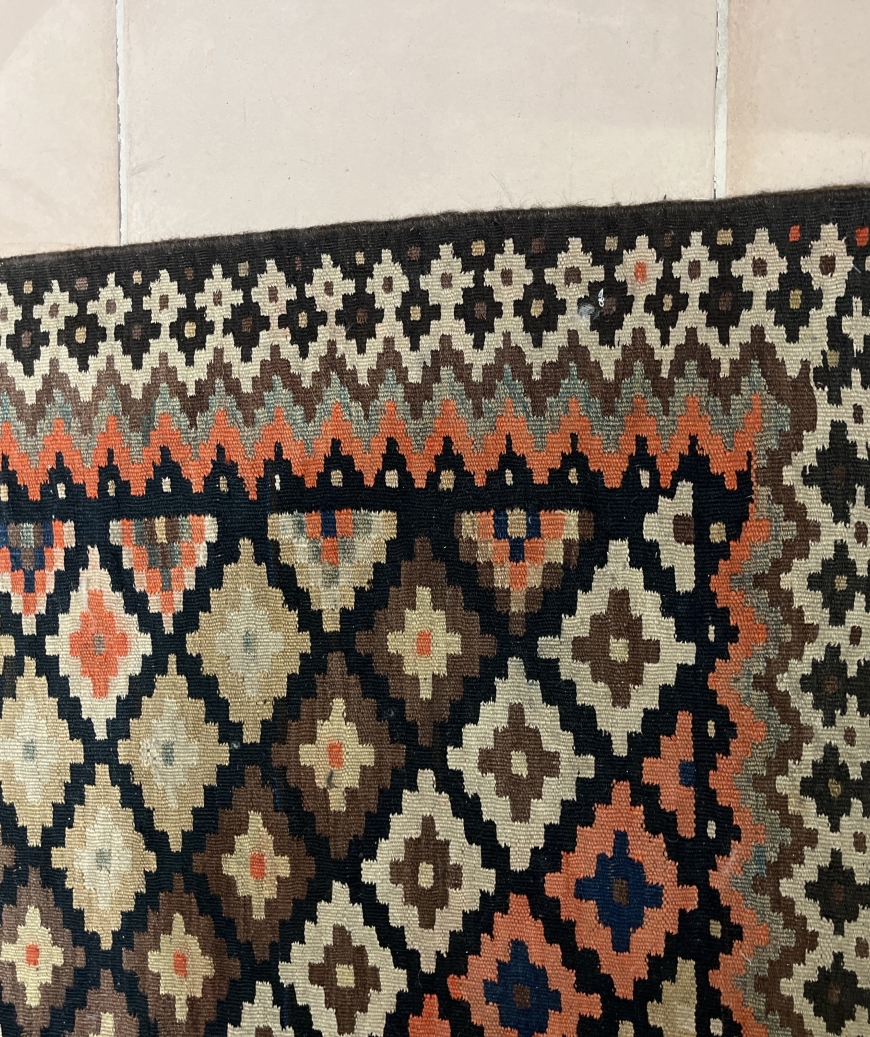 Antieke kelim zwart met aardse tinten