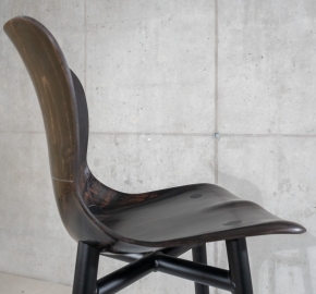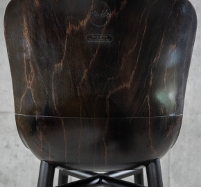 Zitting: laag gevormd beukenhout, gelamineerd volgens een mal uit de jaren 50