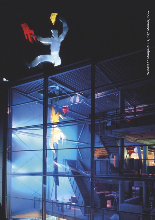 De Duitse ontwerper Ingo Maurer maakt een opvallend kunstwerk voor Maupertuus. Hoog op het dak verschijnt een mannenfiguur met een lamp en een stoel in zijn hand; een vrouwenfiguur is inpandig, met een vaas op haar voet balancerend, via een draaiplateau aan hem verbonden. Samen draaien ze mee met de wind. Het 12 meter hoge object is gemaakt van gepolijst aluminium, afkomstig van gerecyclede Russische straaljagers. De windvaan wordt een nieuw markeringspunt van de stad Groningen.