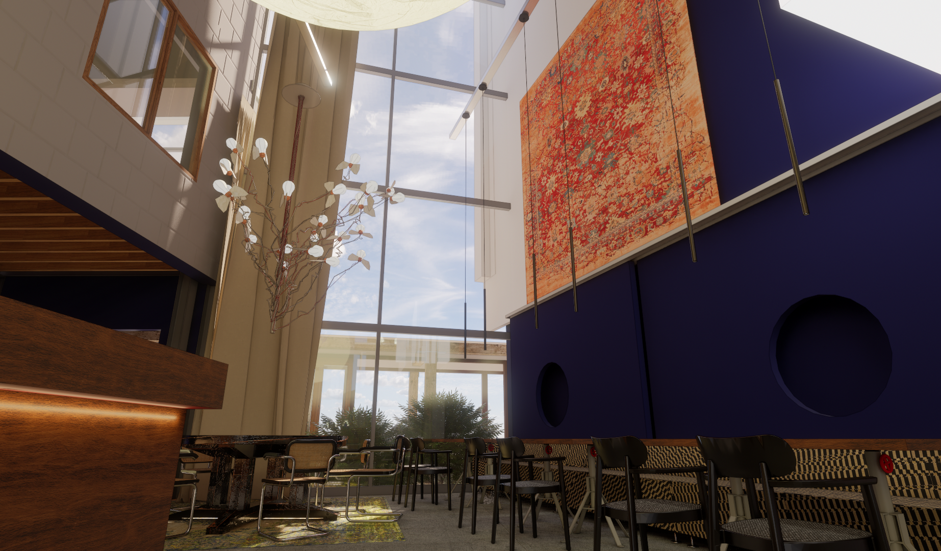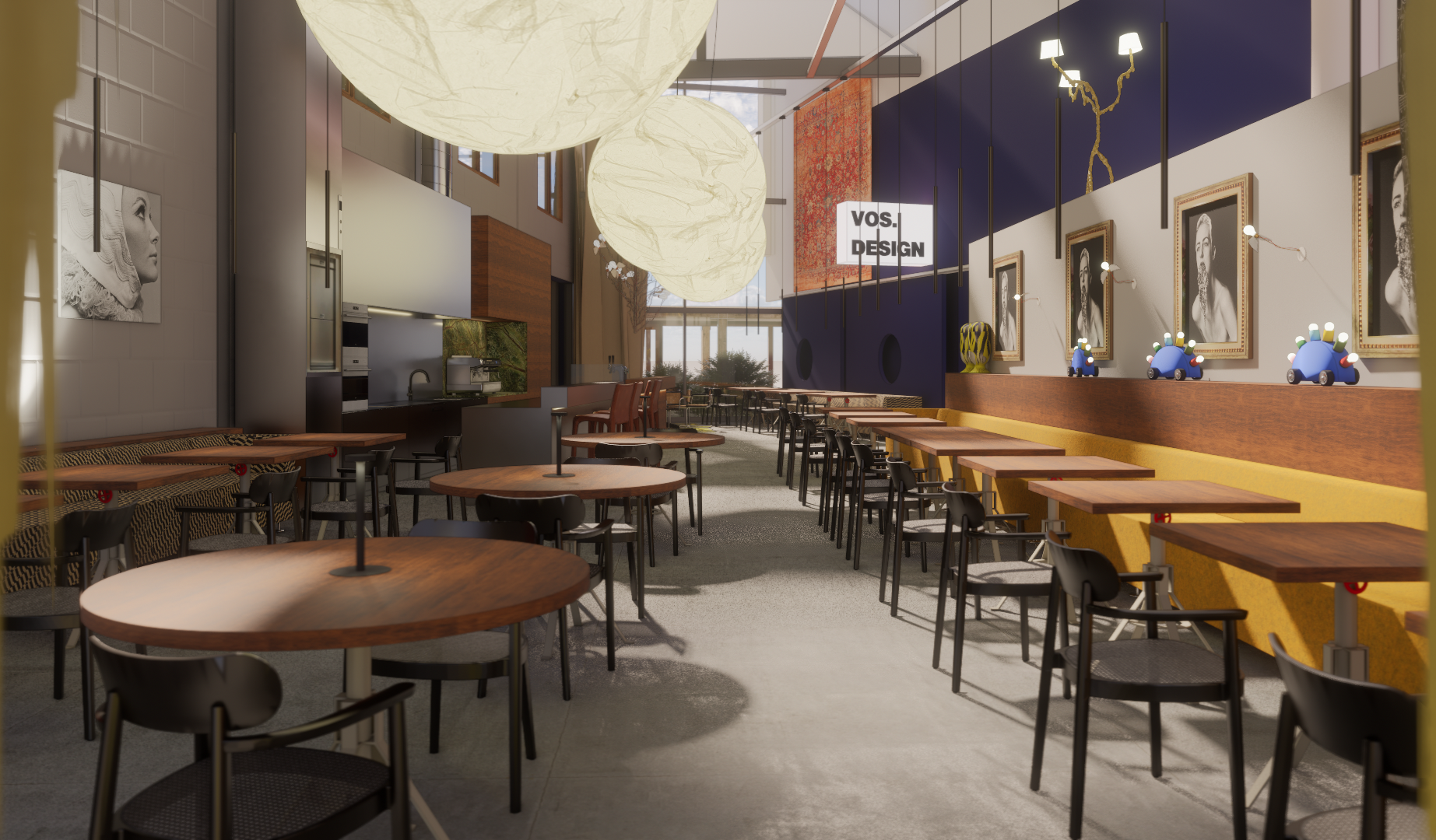 In het horecagedeelte, gesitueerd tussen Bulthaup en de winkel van VOS design, komt een hoogwaardig, zelfvoorzienend restaurant. “Het moet de motor van het gebouw worden”, zegt Bart. “Een bruisende plek waar mensen al om acht uur ’s ochtends binnenkomen voor een kop koffie en voor overleg. En in het restaurant moet de hele dag - tot een uur of zes ’s avonds en misschien nog wel later - goed eten te krijgen zijn”, zegt Bart.