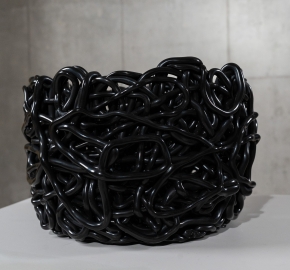 De Basket Senza Fine Rond M in zwart is onderdeel van de Senzafine-serie, ontworpen door Gaetano Pesce voor Meritalia. De naam Senza Fine betekent “zonder einde” en verwijst naar de organische, onafgebroken lijnen in het ontwerp.