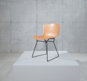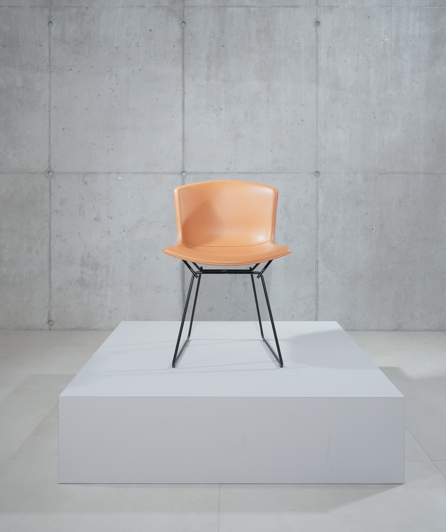 De Bertoia Side Chair in Cowhide is een luxueuze herinterpretatie van het iconische ontwerp uit 1952 van Harry Bertoia. Deze versie combineert de luchtige draadstructuur met een volledig met koeienhuid beklede zitschaal, wat resulteert in een stoel die zowel sculpturaal als comfortabel is. De stoel is geschikt voor diverse omgevingen, van residentieel tot zakelijk gebruik.