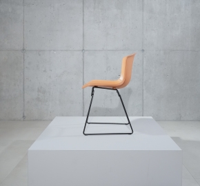 Zitschaal: glasvezelversterkt nylon, volledig bekleed met koeienhuid in zwart, donkerbruin of naturel