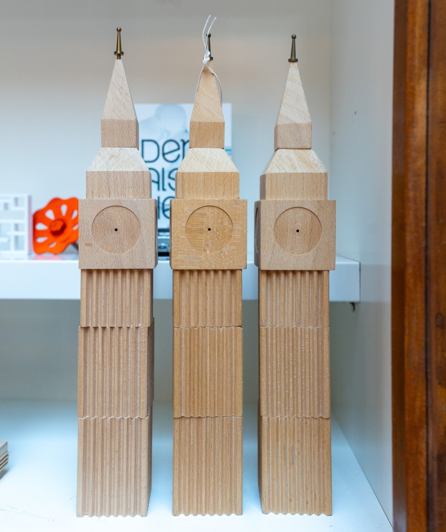 Massief houten schaalmodel van de Big Ben.