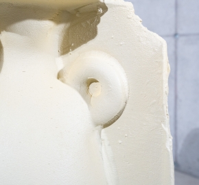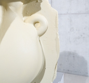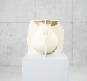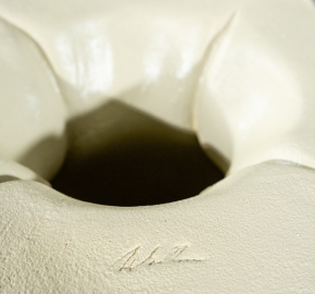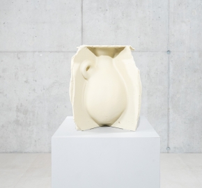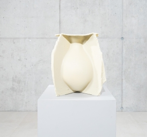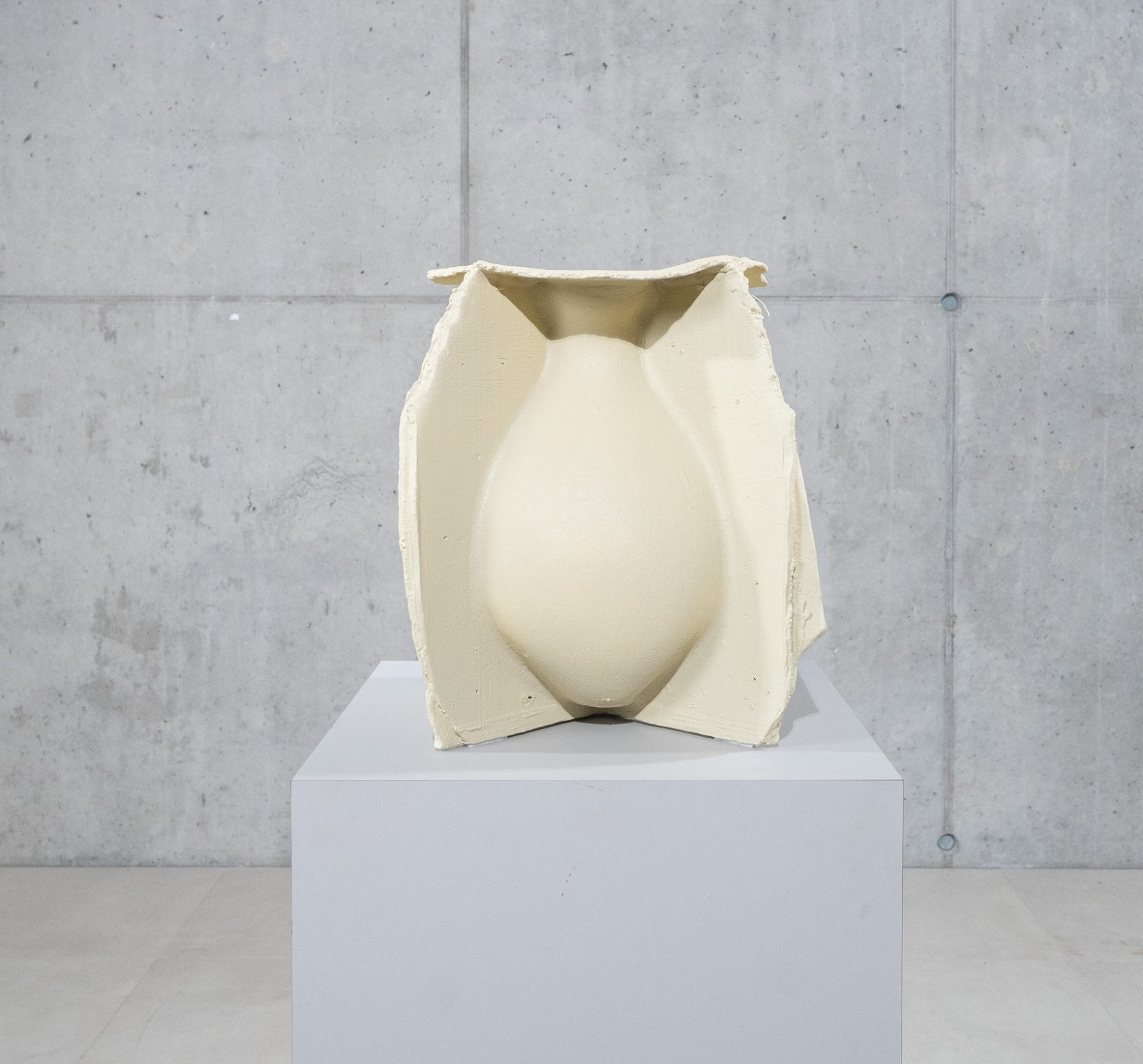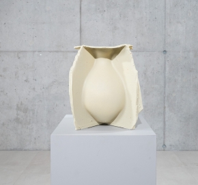De Blow-Up Vase in crème toont hoe lucht en klei samen een vorm kunnen maken die niet geforceerd aanvoelt, maar juist natuurlijk tot stand komt. Twee platte kleiplaten worden in een houten mal opgeblazen met perslucht. Wat volgt is een vaas met volume en een eigenzinnige vormtaal. De zachte, kalkachtige crème-tint benadrukt de gelaagdheid van het oppervlak en de rustige, bijna poederachtige uitstraling.