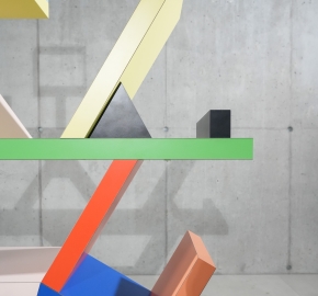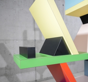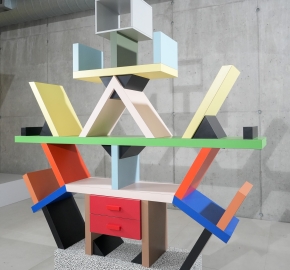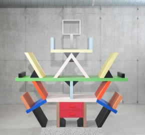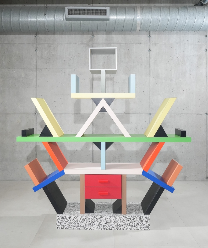 Carlton is hét postmoderne icoon van het Memphis Design‑collectief. Deze speels geometrische boekenkast, ontworpen als een sculptuur met menselijke trekken (staan, armen gespreid), doorbreekt conventioneel meubilair. Zijn combinatie van schuine planken en opvallende kleuren zorgt zowel voor visuele impact als functionele stevigheid – ontworpen zodat boeken niet zomaar omvallen.