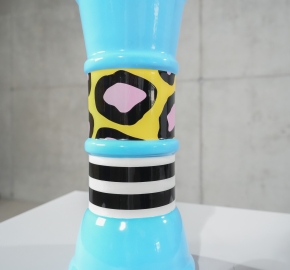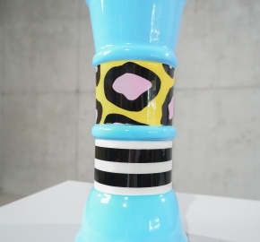 De Carrot vaas, ontworpen door Nathalie Du Pasquier in 1985, belichaamt de speelse geest van de Memphis-beweging. Met haar grafische vormen en levendige kleuren is dit keramische object meer dan een vaas—het is een artistiek statement. Elk exemplaar is met de hand beschilderd en voorzien van unieke decoratieve motieven die subtiel in het keramiek zijn ingebrand. Een intrigerend accentstuk dat karakter toevoegt aan elk interieur.
