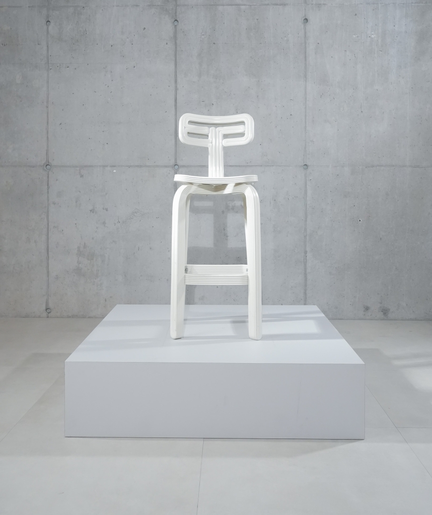 De Chubby Bar is een opvallende barkruk die duurzaamheid en design combineert. Ontworpen door Dirk van der Kooij in 2016, wordt elke kruk vervaardigd uit ongeveer 10 kg gerecycled kunststof, afkomstig van oude koelkastinterieurs. Door gebruik te maken van een zelfontwikkelde 3D-printtechniek ontstaat een unieke, robuuste structuur zonder interne verstevigingen. De kruk is verkrijgbaar in diverse kleuren en biedt een speelse toevoeging aan elk interieur.