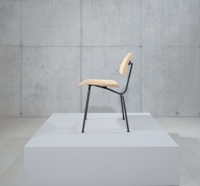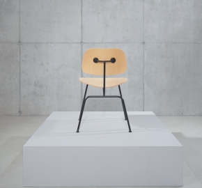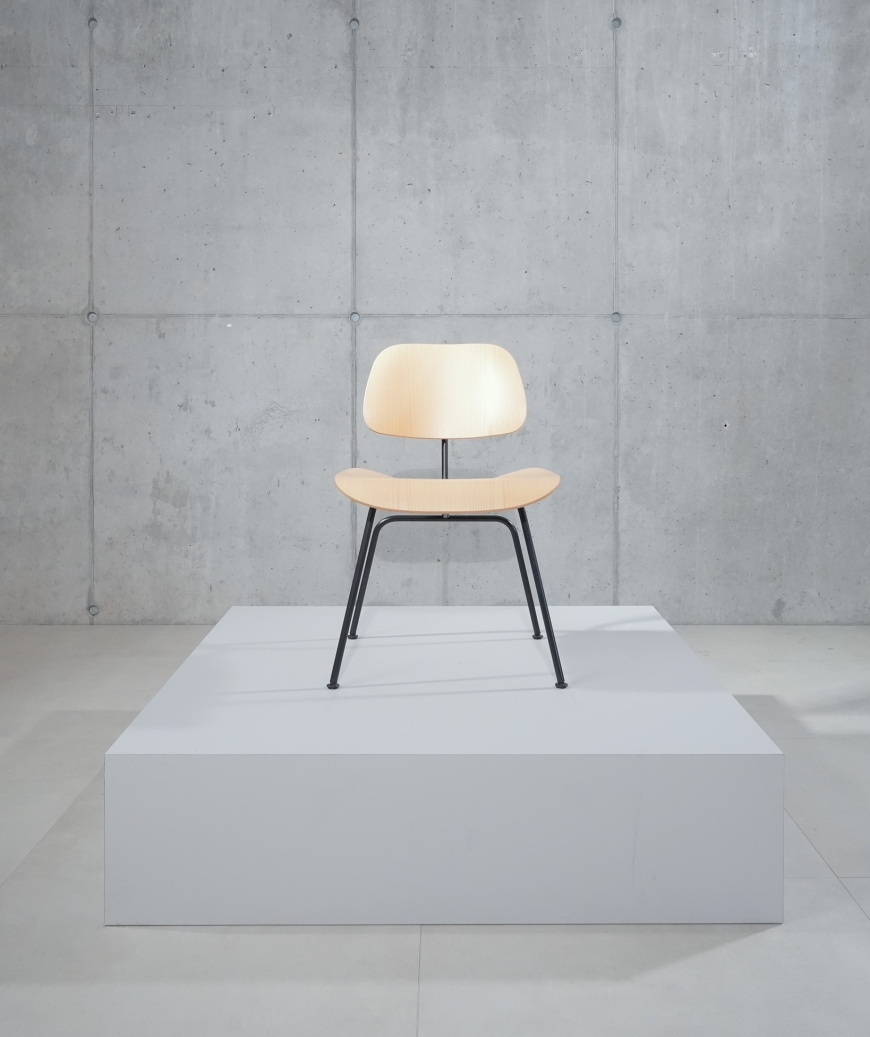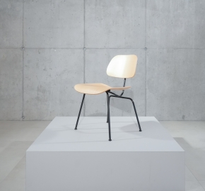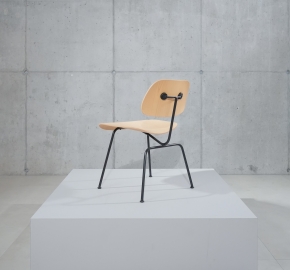 De DCM (Dining Chair Metal), ontworpen in 1945 door Charles en Ray Eames, is een iconisch voorbeeld van modernistisch design. Deze stoel maakt deel uit van de Plywood Group en combineert een driedimensionaal gevormde zitting en rugleuning van multiplex met een slank metalen onderstel. De organische vormen en het gebruik van innovatieve materialen zorgen voor zowel comfort als een tijdloze esthetiek. De zitting en rugleuning zijn bevestigd aan het onderstel met rubberen schokdempers, wat zorgt voor extra flexibiliteit en comfort.