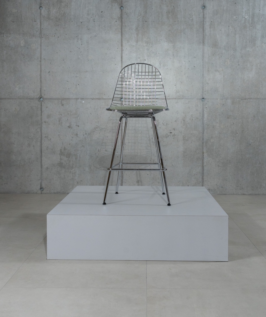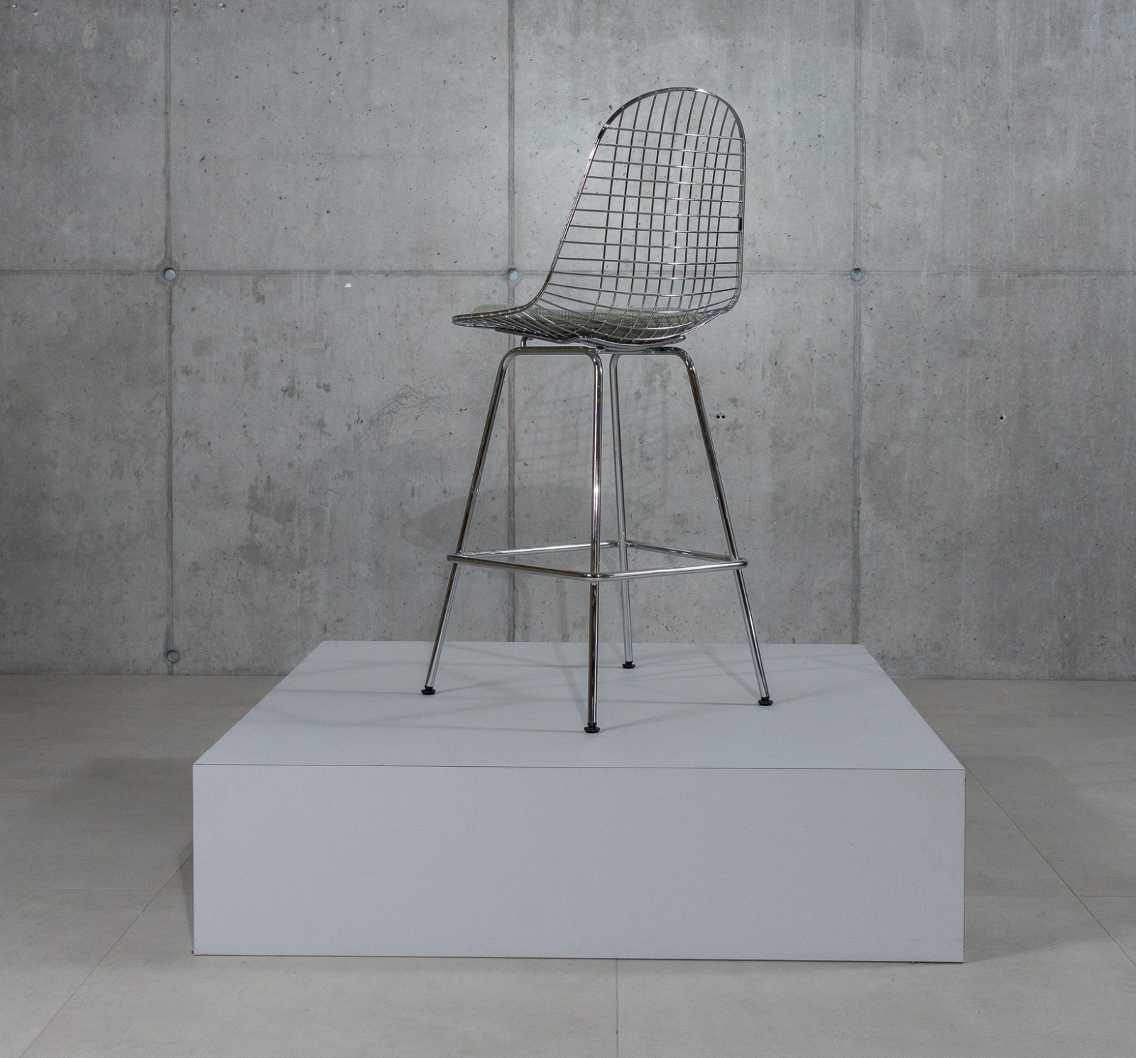 De Eames Wire Barkruk is ontworpen door Charles & Ray Eames in 1951 en wordt vandaag geproduceerd door Vitra. Het ontwerp is een variatie op de bekende Eames Shell Chair, maar uitgevoerd in gelast staaldraad, waardoor een lichte en transparante constructie ontstaat.