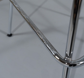 Gelast staaldraad (verchroomd) met onderstel van stalen buis en voetsteun. Zitting voorzien van Hopsak stoffering.