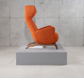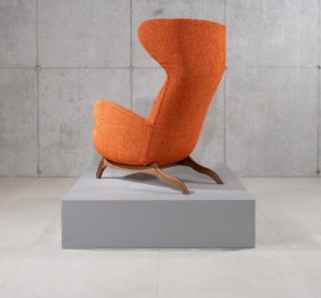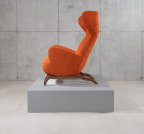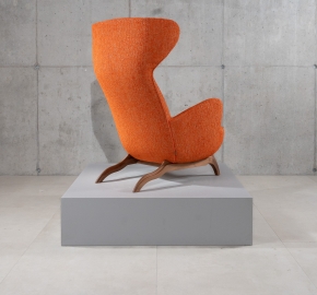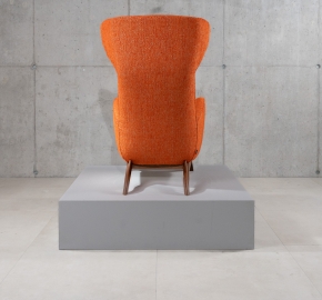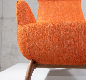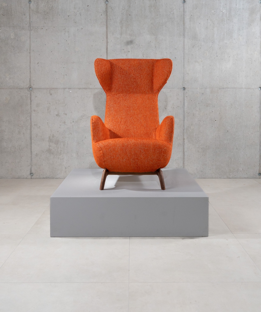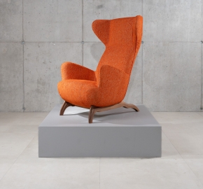 De Ardea (CM) is een ontwerp van Carlo Mollino (1946) voor Zanotta. Deze bergère-fauteuil is opnieuw uitgegeven in de “CM” serie, waarin de kenmerkende rugleuning met opstaande ‘oren’ terugkomt. Deze versie met walnoot frame en stof Viero combineert de warme houttonen met een elegante textuur van de stoffering.