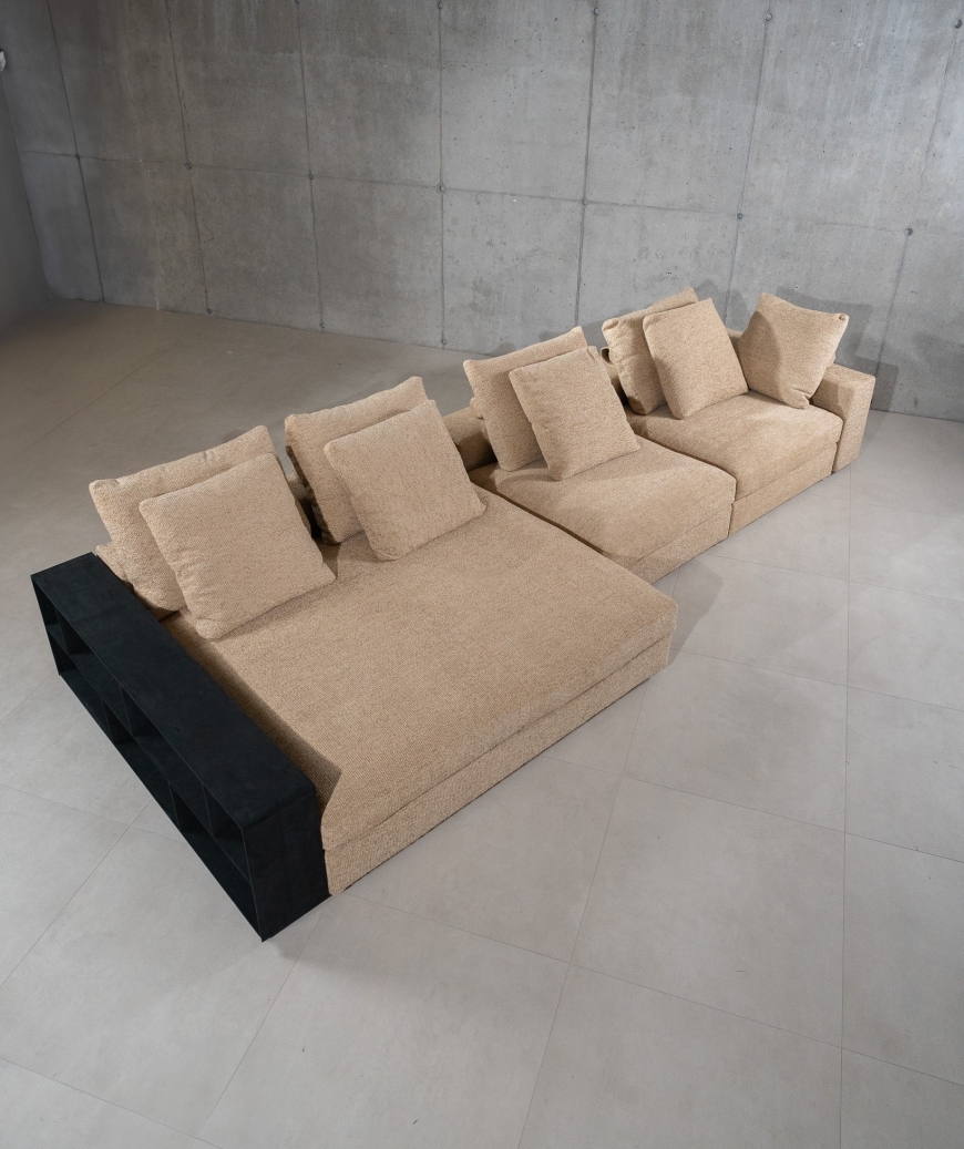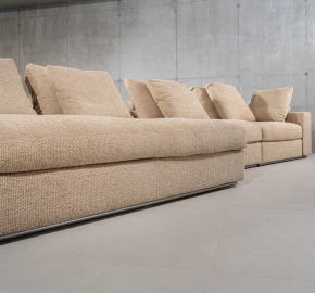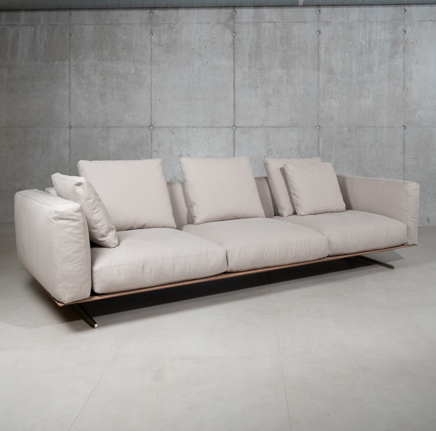 De Groundpiece-serie is ontworpen door Antonio Citterio voor Flexform. De “Essence 69” variant met armrest in hide leather combineert de zachte, diepe zit van Groundpiece met een luxe lederen armleuning die functioneert als subtiele accentpartij.