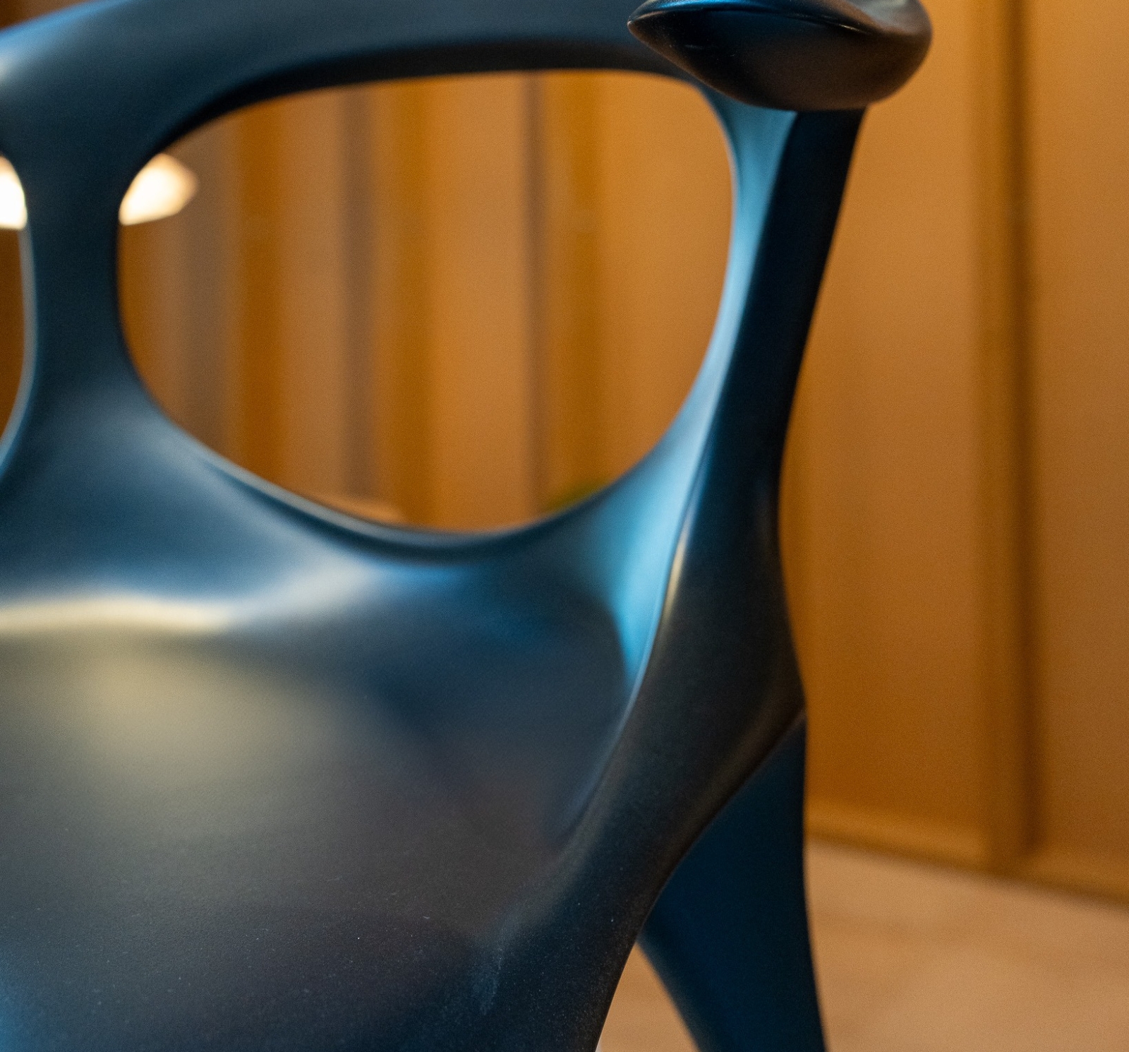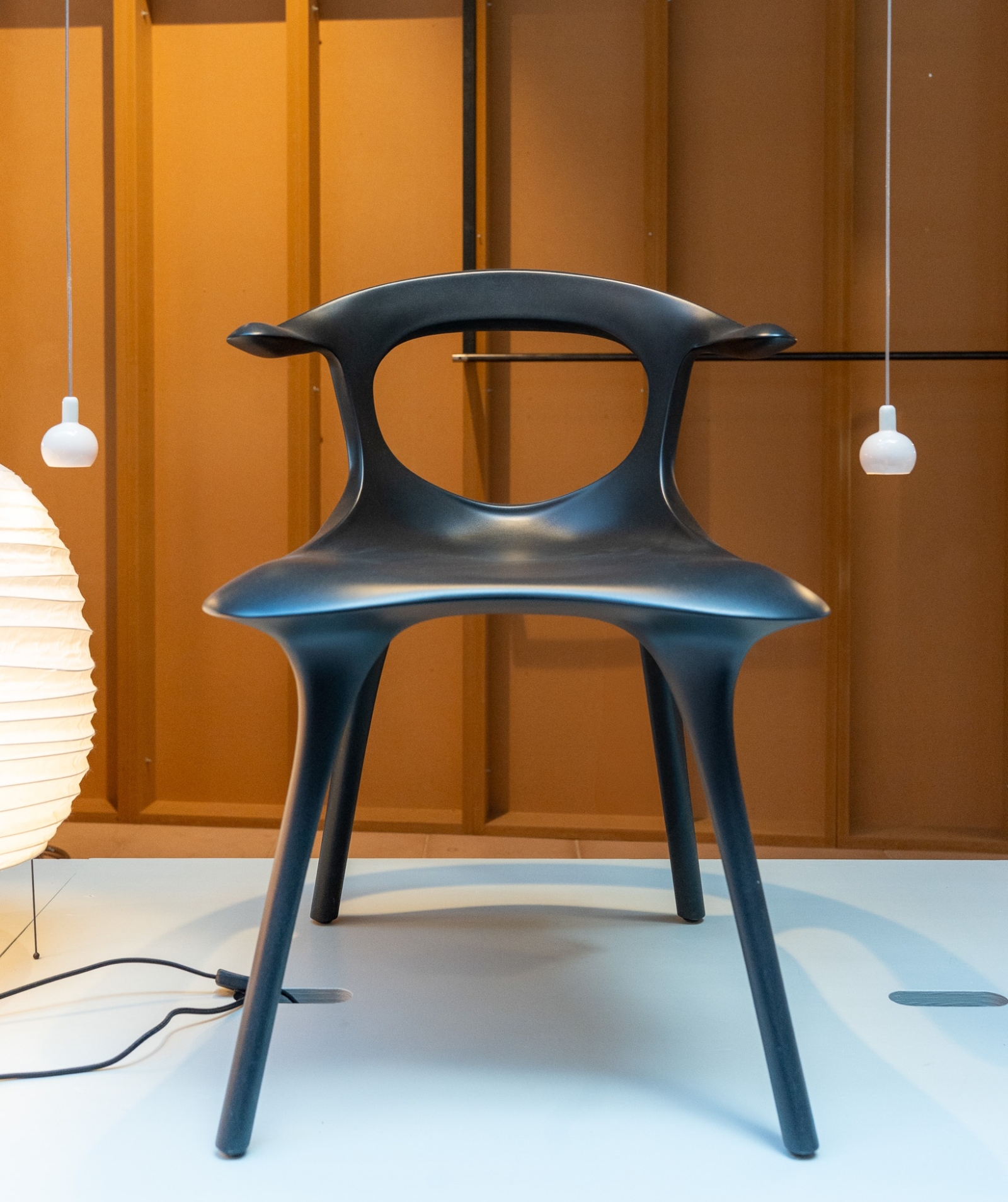 De Gu Chair LQ with Armrests van Sawaya & Moroni is een bijzondere armstoel ontworpen in samenwerking met MAD Architects, onder leiding van Ma Yansong — een naam die staat voor een vloeiende, organische interpretatie van vorm en materiaal. “Gu” betekent “bot” in het Chinees, en juist die inspiratie komt terug in de stoel: de verbindingen, krommingen en vloeiende lijnen verwijzen naar een soort interne structuur die net zo tactiel als sculpturaal is.