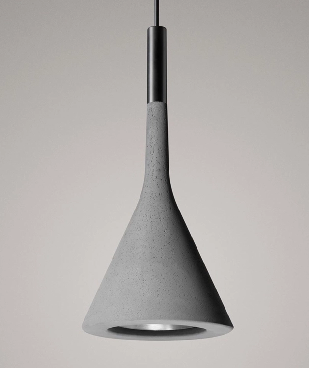 Minimalistische hanglamp van Foscarini, ontworpen door Lucidi e Pevere. De lamp is gemaakt van handgegoten beton waarbij de pigmenten direct in het materiaal zijn verwerkt. Hierdoor krijgt het armatuur een matte, steenachtige structuur.