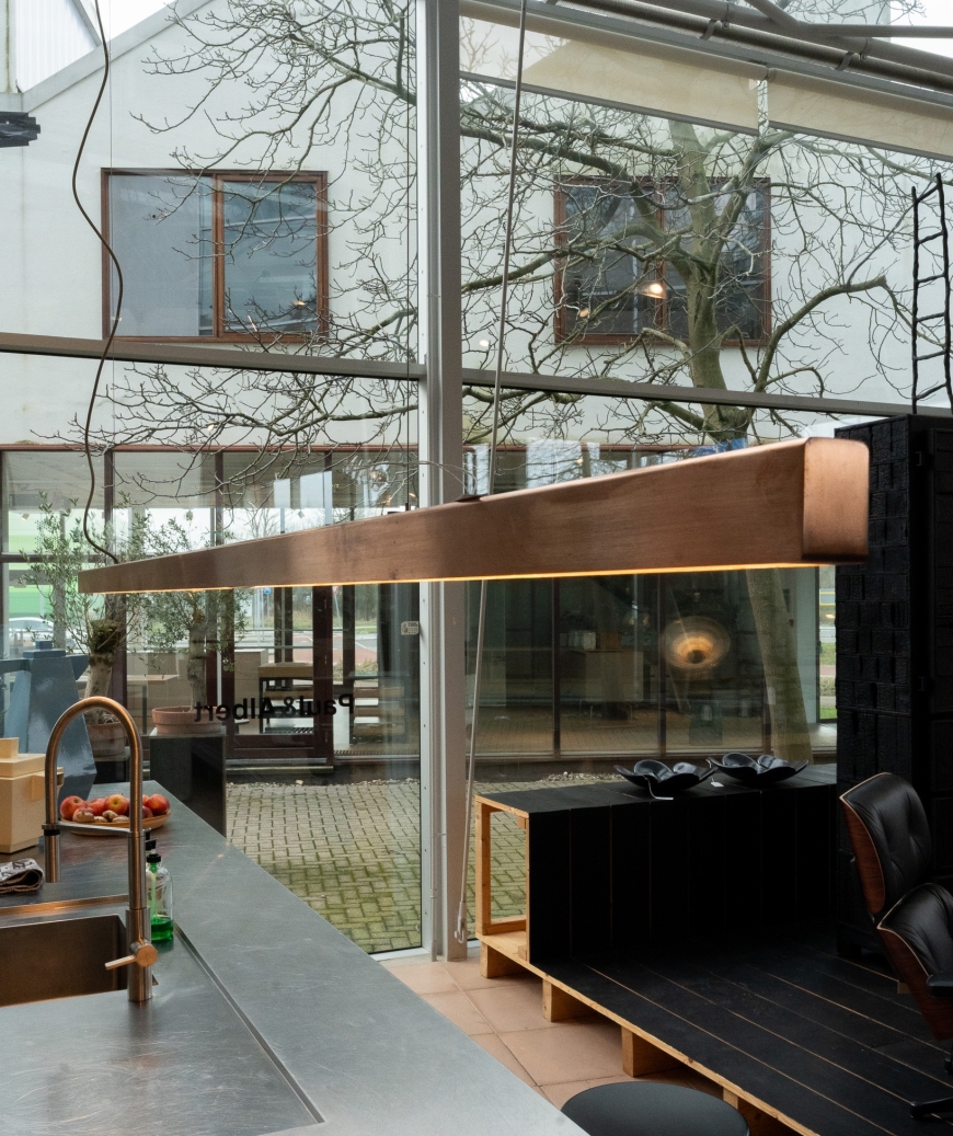 De Hanglamp I-model van Anour in Brush Copper is een sculpturaal én ingetogen verlichtingselement met een moderne uitstraling. Het ontwerp combineert een slanke en eenvoudige geometrie met een warme, metaalachtige afwerking die subtiel reflecteert zonder te overheersen. De Brush Copper laag geeft de lamp een zachte glans en warmte in de lichtval, wat bijdraagt aan een uitnodigende sfeer in uiteenlopende interieursettings.