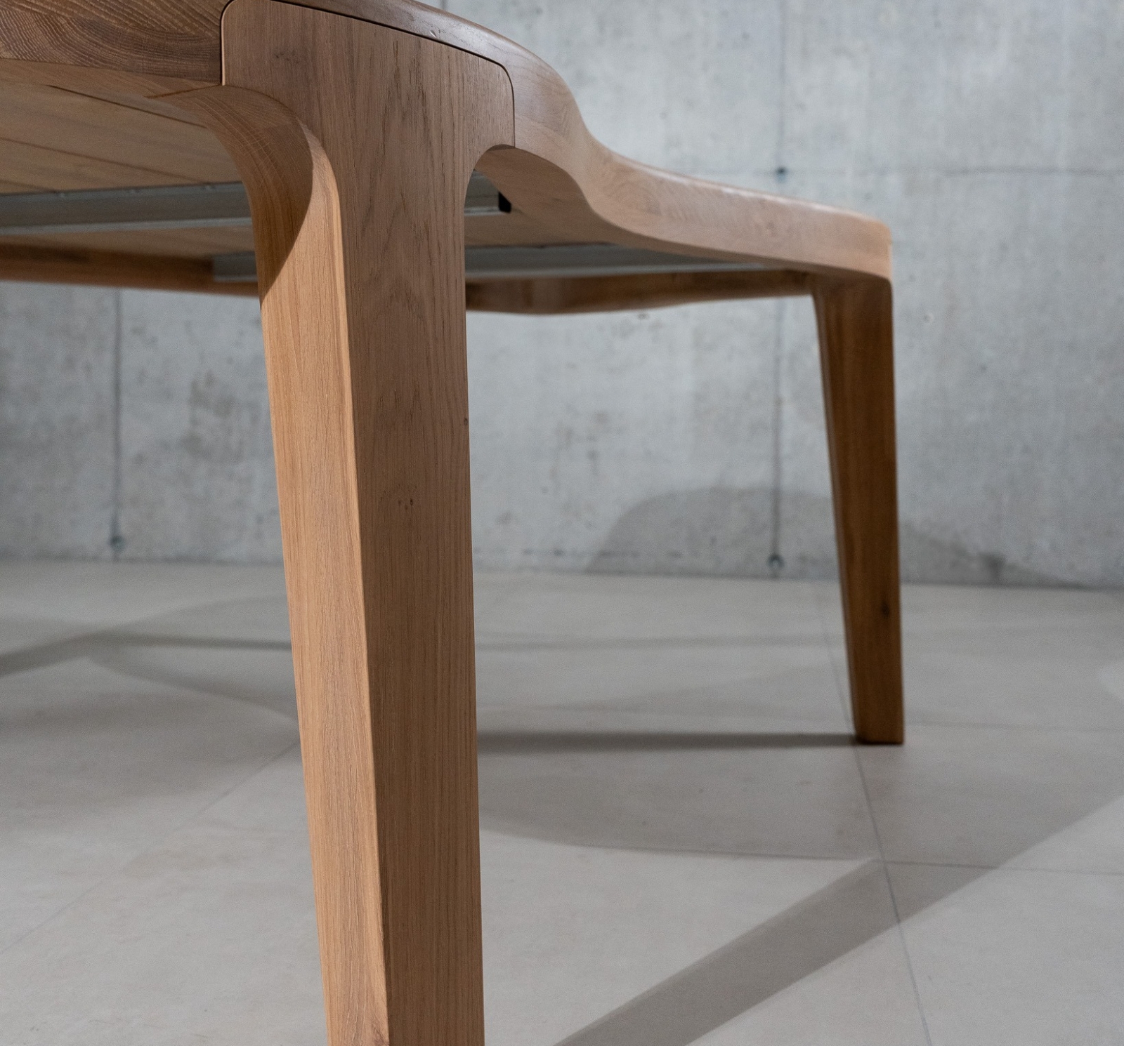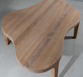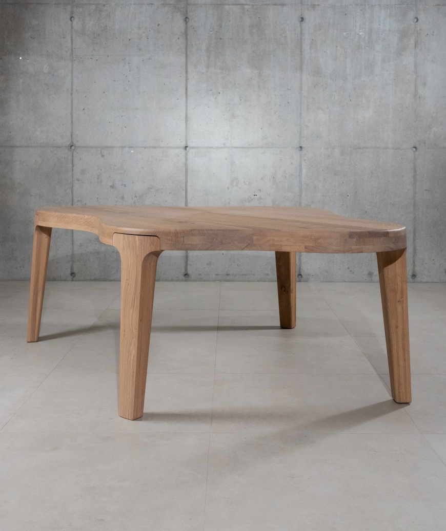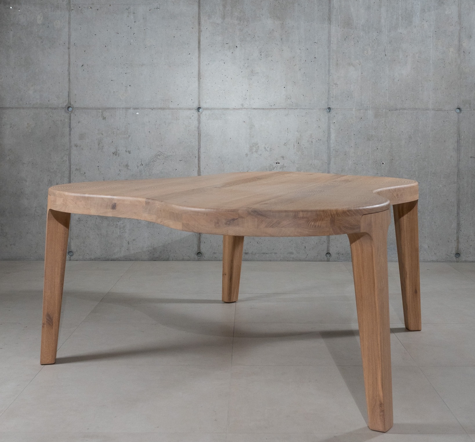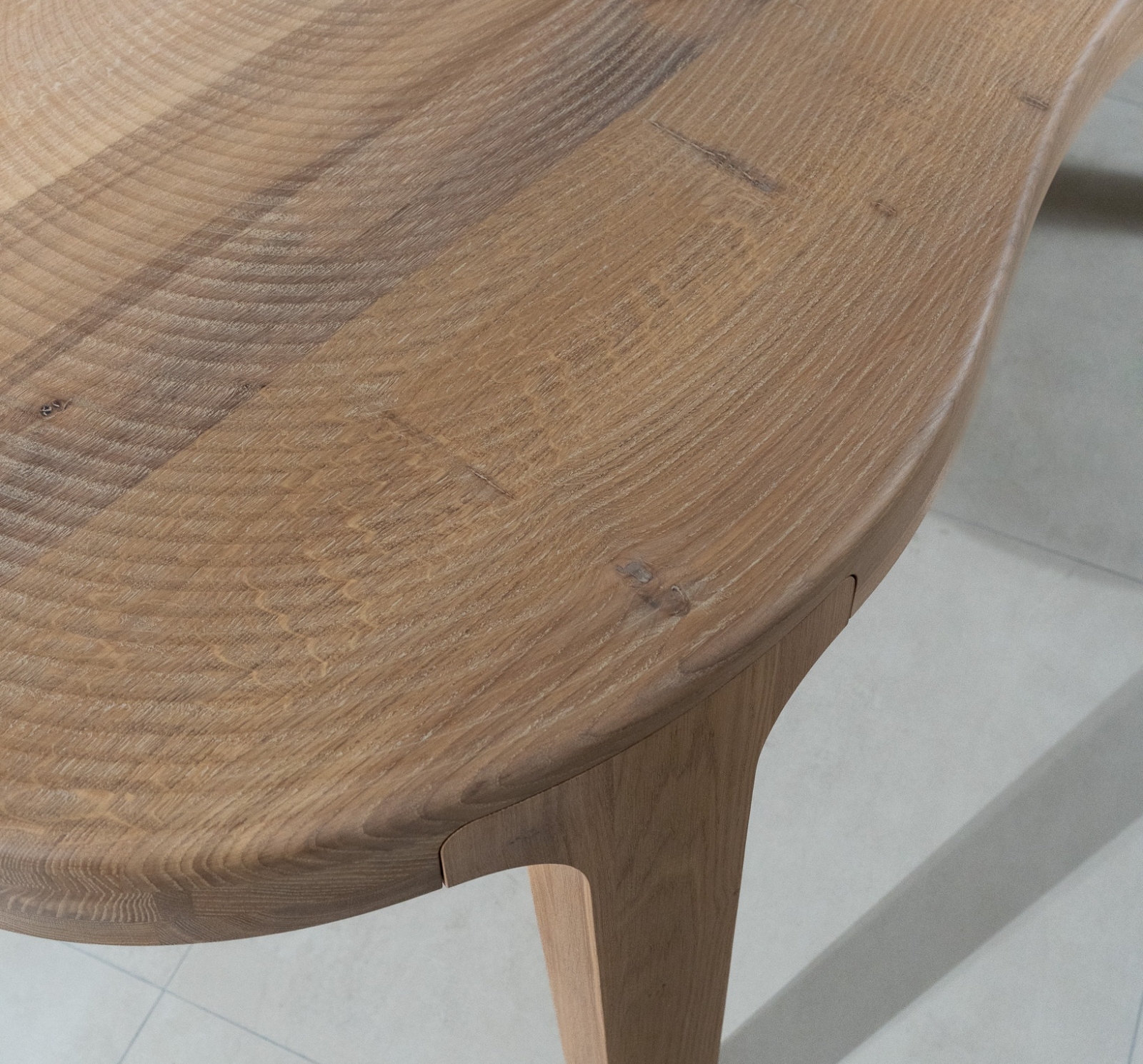 De Isola eettafel is ontworpen door Roderick Vos voor Linteloo. Het ontwerp gaat uit van organische vormen en natuurlijke esthetiek: in plaats van strak rechthoekig ontwerp, weerspiegelt het blad de grillige, zachte vormen die je in de natuur ziet. Geïnspireerd op patronen die golven in zand achterlaten.