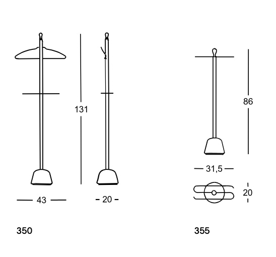 Minimalistische kledingstandaard van Zanotta, ontworpen door Achille Castiglioni en Pier Giacomo Castiglioni (1986). Het ontwerp maakt deel uit van de Servi-serie en is bedoeld als compacte kledinghouder voor slaapkamer of kleedruimte. De kapstok bestaat uit een stalen frame met een basis van polypropyleen, waardoor het object licht maar stabiel blijft. Door de eenvoudige constructie kunnen kledingstukken overzichtelijk worden opgehangen zonder dat het meubel visueel domineert.