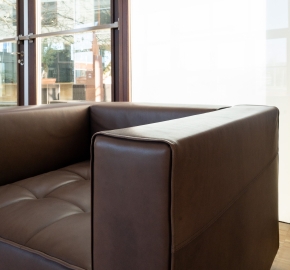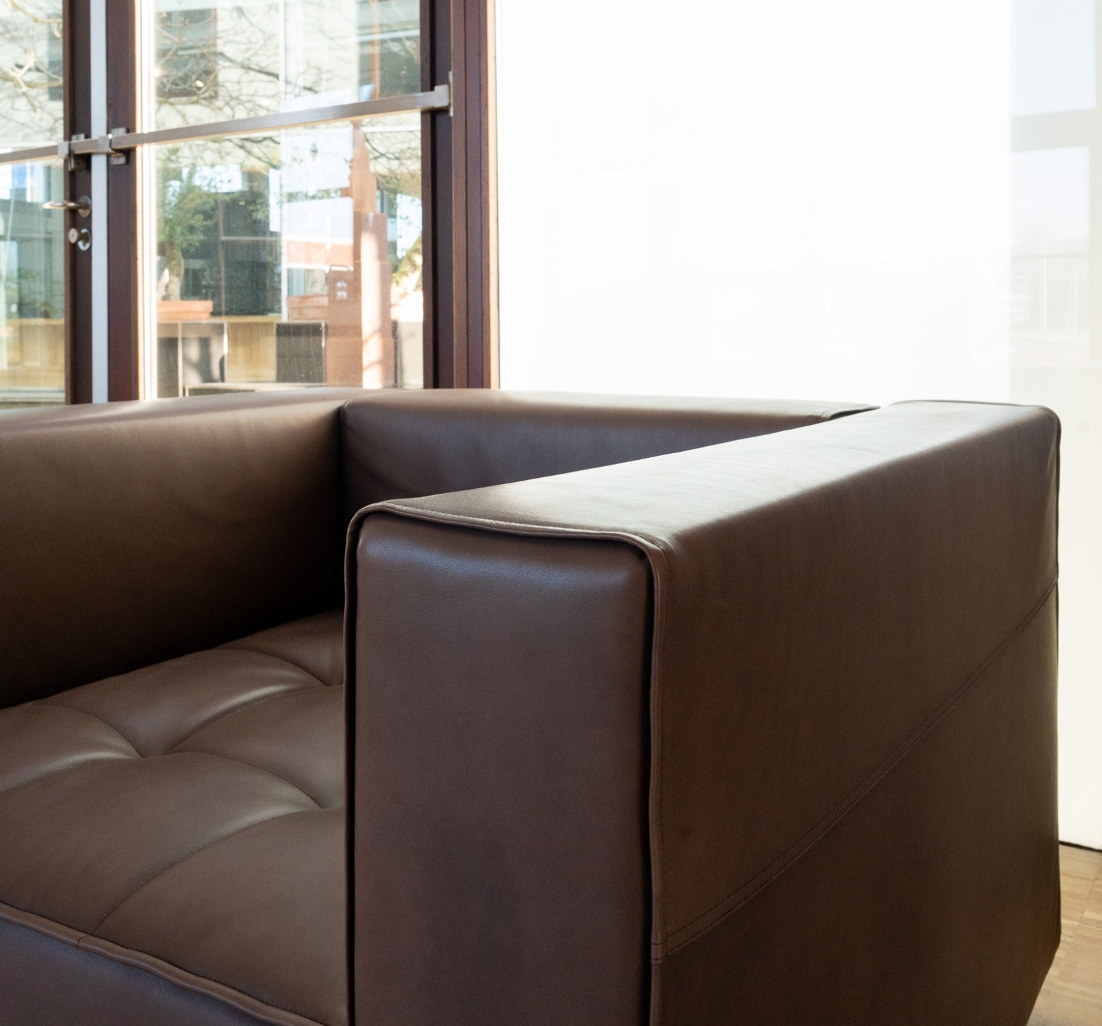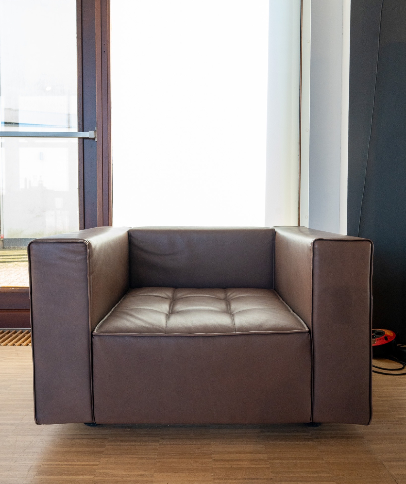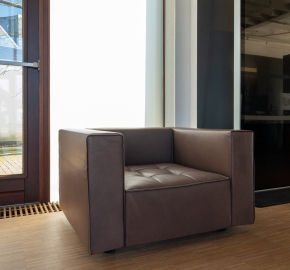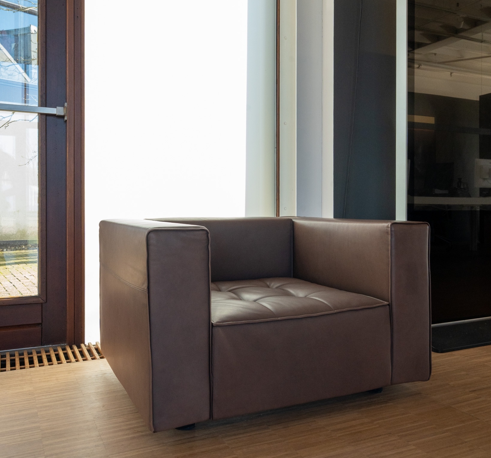 De Kilt is een designfauteuil uit de collectie van Zanotta, ontworpen door Emaf Progetti. Het ontwerp valt op door zijn lage, brede proporties en het kenmerkende doorgestikte zitkussen dat de fauteuil een grafische uitstraling geeft. De constructie bestaat uit een stalen frame met elastische banden en een vulling van polyurethaanschuim en polyestervezel, wat zorgt voor een stevige maar comfortabele zit. De bekleding in leer is afneembaar en het zitkussen heeft een subtiele quiltstructuur die het ontwerp herkenbaar maakt.