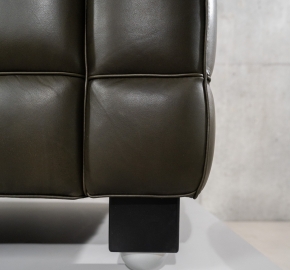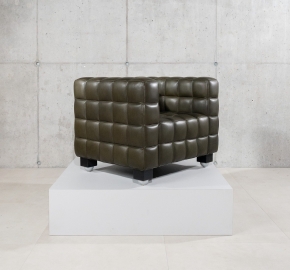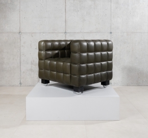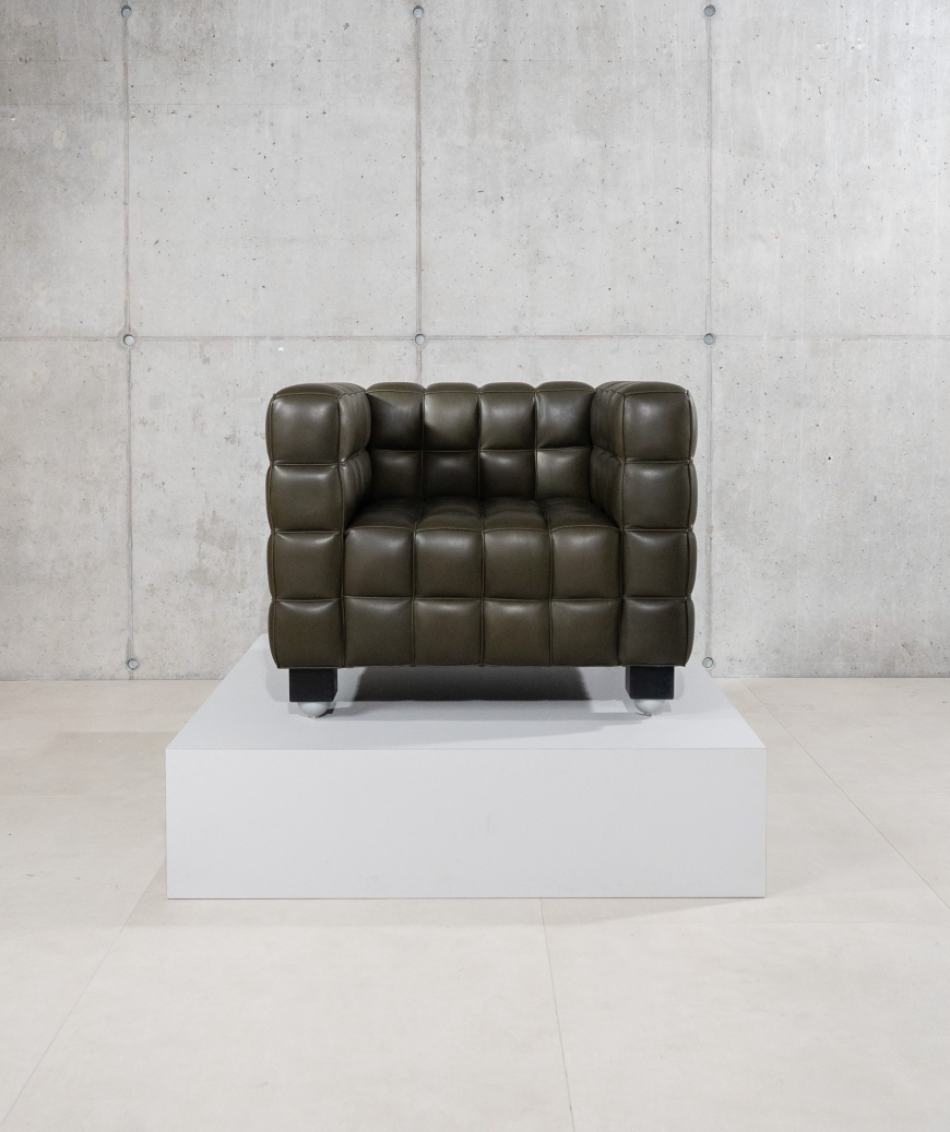 De Kubus Armchair is een klassieker die zijn oorsprong vindt in het Wenen van de vroege 20e eeuw. Josef Hoffmann ontwierp de stoel in 1910 als reactie op ornament en overdaad. In plaats daarvan koos hij voor een helder grid van gelijkmatige vlakken, zorgvuldig opgebouwd uit gecapitonneerde vierkanten. De versie in ‘Natural Olive’ leder voegt een hedendaagse, warme diepte toe aan het heldere lijnenspel
