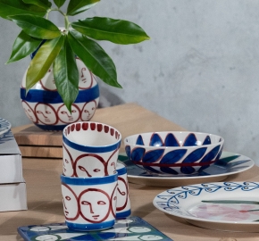 De La Pittura Bowl Ø18 – Deep Blue Flower is ontworpen door Emma Kohlmann voor HAY. De La Pittura-serie brengt haar vrije, illustratieve penseelstreken naar keramiek. Elk motief wordt met de hand aangebracht, waardoor iedere kom een subtiel eigen karakter heeft.