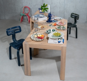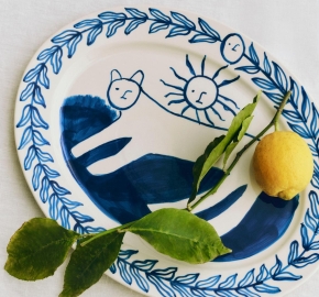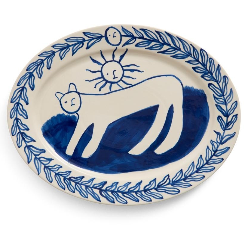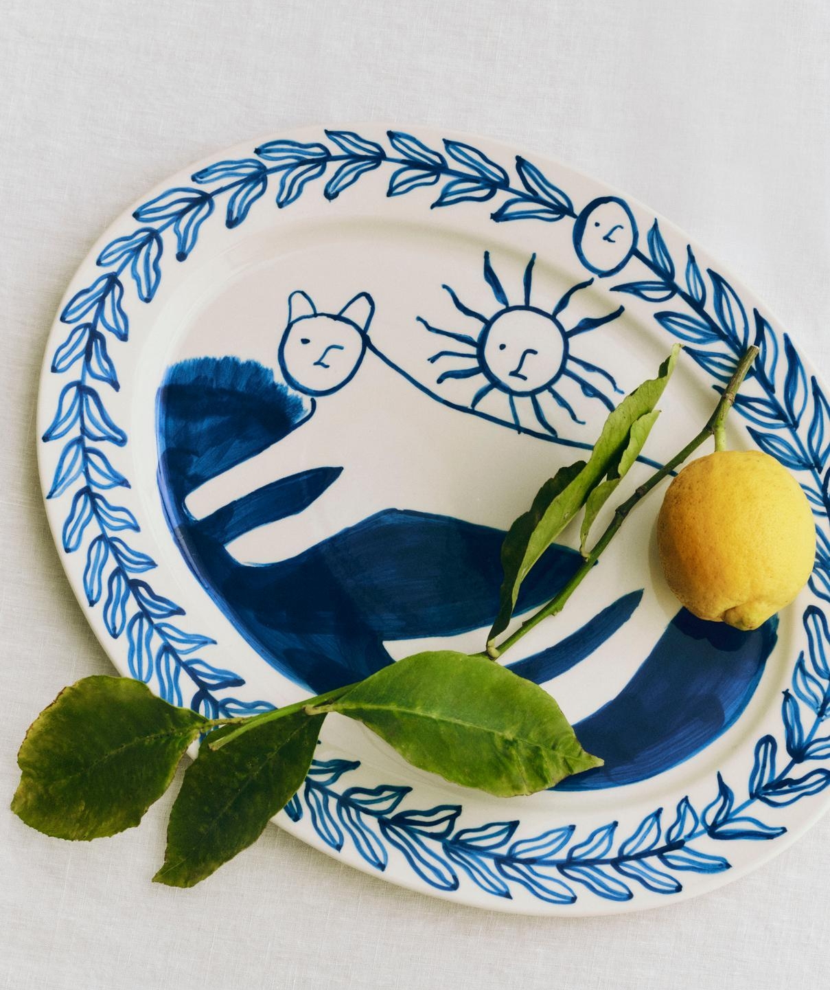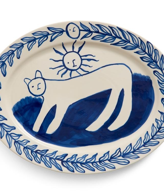 De La Pittura Oval Serving Platter L – Charlotte is ontworpen door Emma Kohlmann voor HAY. Net als de andere stukken in de La Pittura-serie is dit een ontwerp waarin servies en schilderkunst samenkomen. Kohlmann werkt met losse, intuïtieve lijnen en spontane kleurvelden, waardoor elk stuk voelt als een kleine illustratie op tafel.