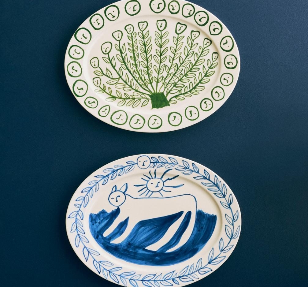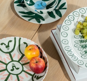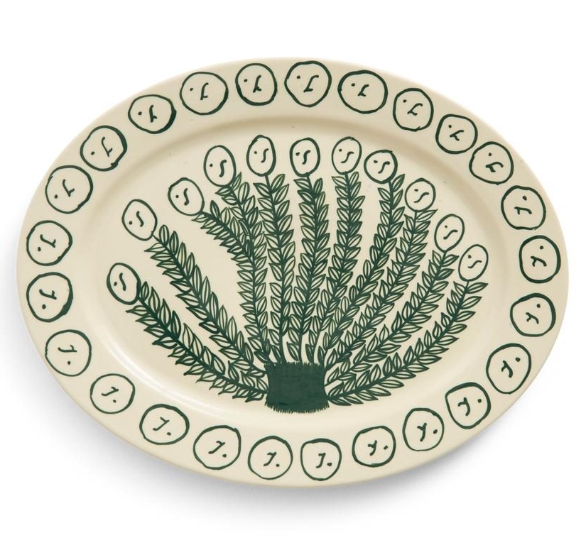 De La Pittura Oval Serving Platter L – Olive Grove is ontworpen door Emma Kohlmann voor HAY. In deze collectie fungeert keramiek als canvas: losse penseelstreken, zachte kleuren en organische vormen geven elke schaal een eigen karakter.