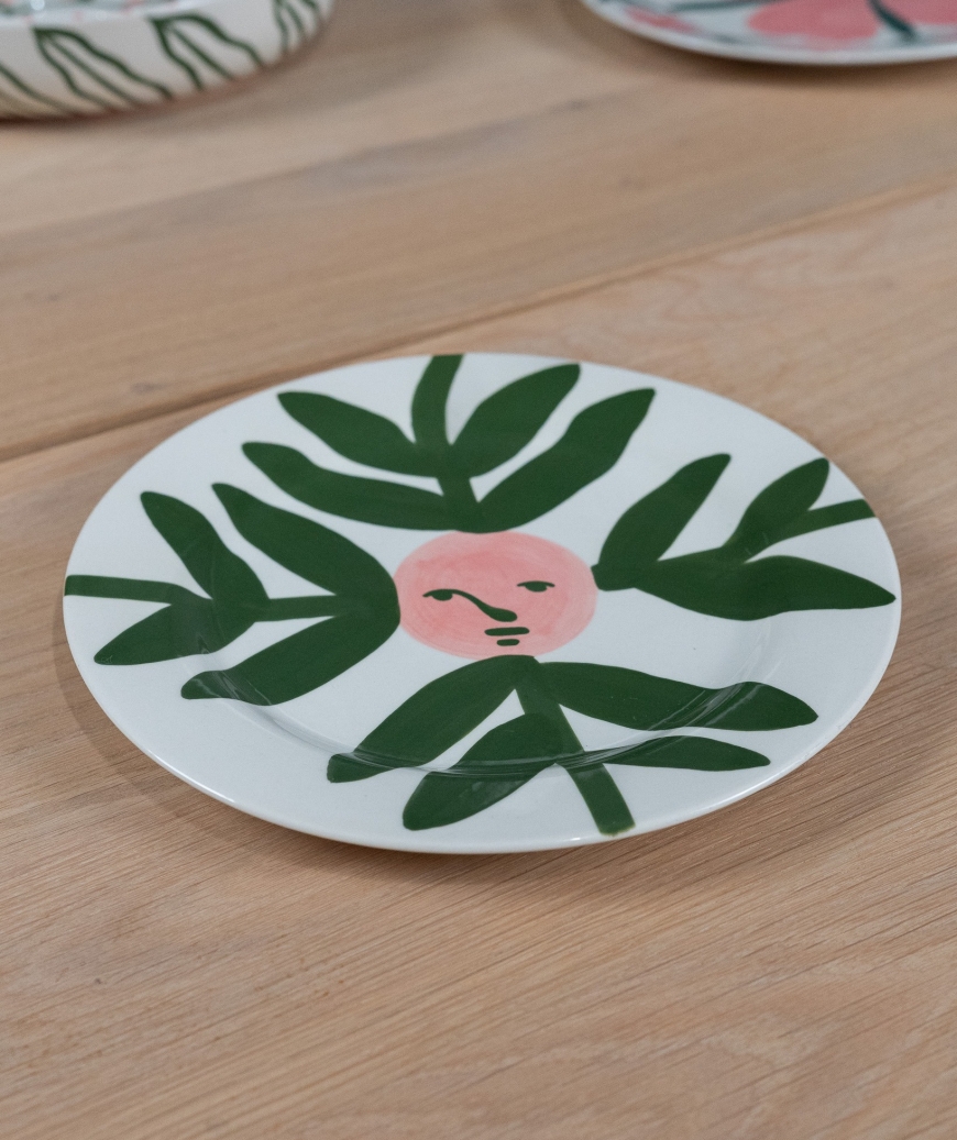 De La Pittura Plate Ø24 – Blush Face Vine is ontworpen door Emma Kohlmann voor HAY. Binnen deze collectie vormt keramiek het canvas: losse tekeningen, intuïtieve lijnen en zachte kleuren worden rechtstreeks met de hand op het bord geschilderd.
