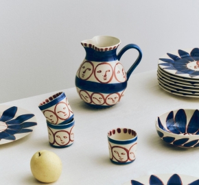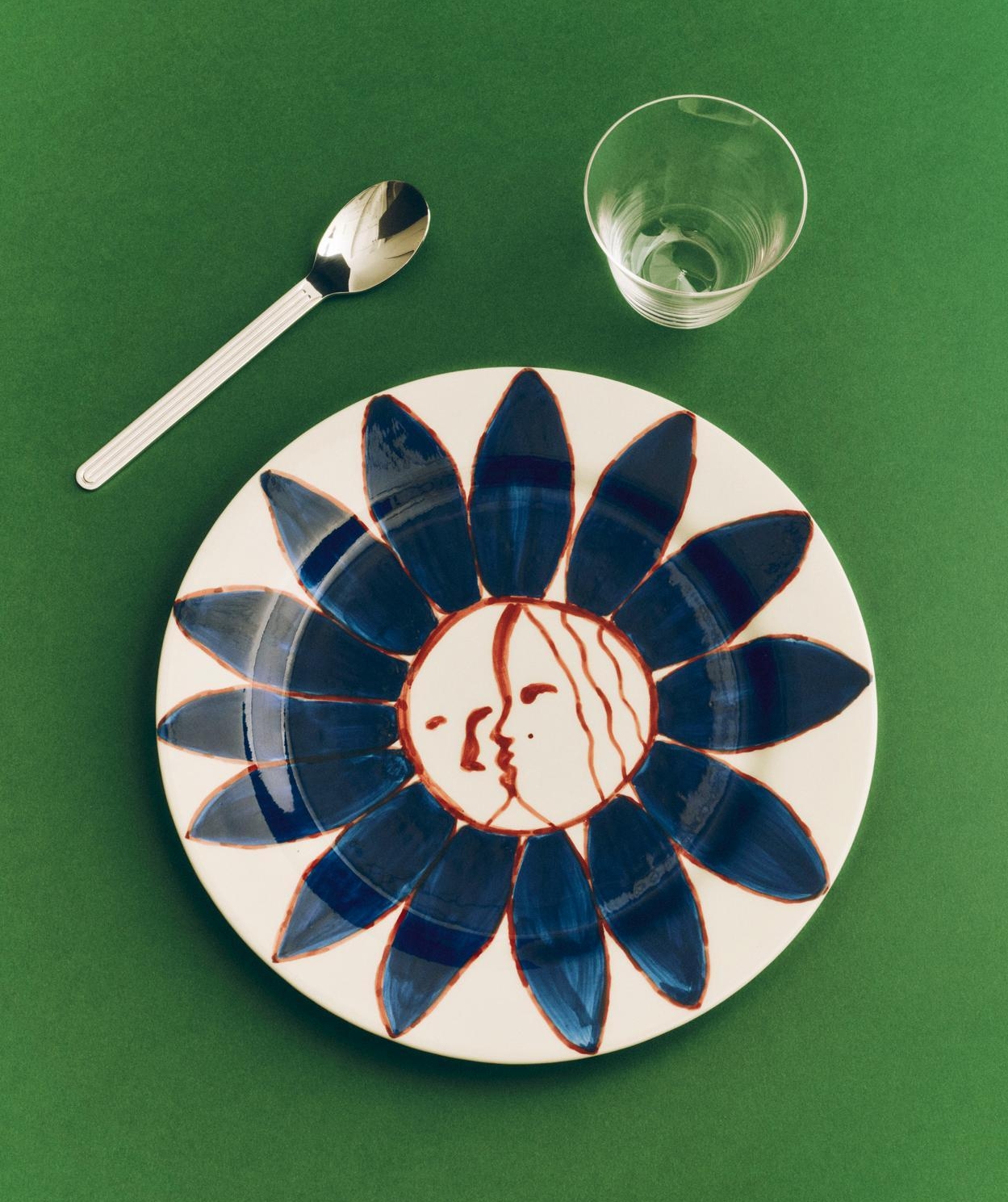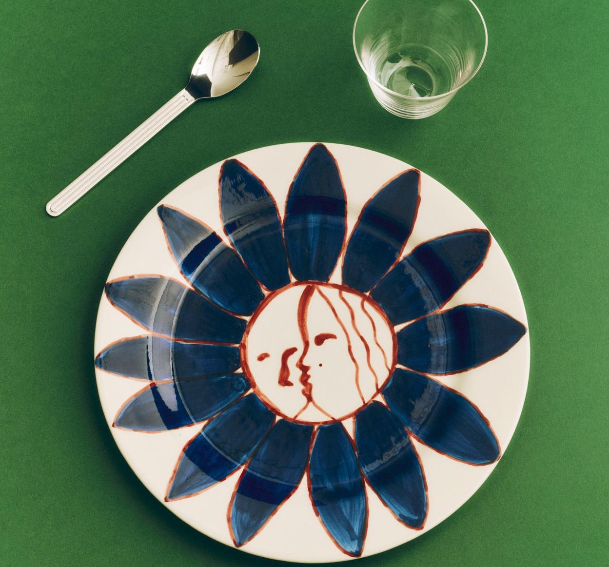 De La Pittura Plate Ø28,5 – Deep Blue Flower is ontworpen door Emma Kohlmann voor HAY. De La Pittura-collectie vertaalt haar losse, spontane schilderstijl naar keramiek. Op elk bord staat een handgeschilderd motief, alsof er direct met penseel op het glazuur is gewerkt.