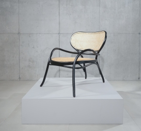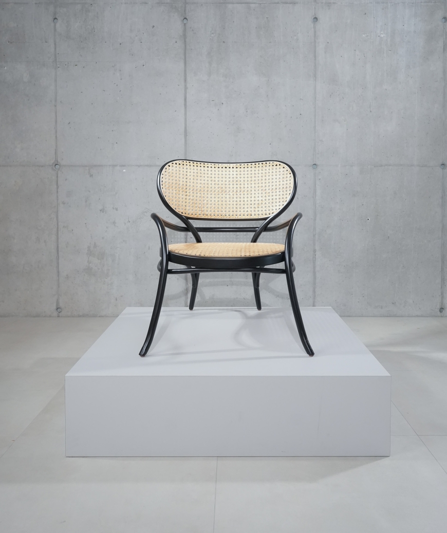 De Lehnstuhl, ontworpen in 2014 door Nigel Coates, is een eigentijdse loungefauteuil die de traditionele Thonet-techniek van gebogen hout combineert met modern design. Het frame van stoomgebogen beukenhout vormt vloeiende lijnen die de royale zitting en rugleuning omlijsten. De zitting en rugleuning zijn vervaardigd van gevlochten rotan in een open weefpatroon, wat zorgt voor zowel comfort als een luchtige uitstraling. De Lehnstuhl is een expressief meubelstuk dat zowel in klassieke als moderne interieurs tot zijn recht komt.
