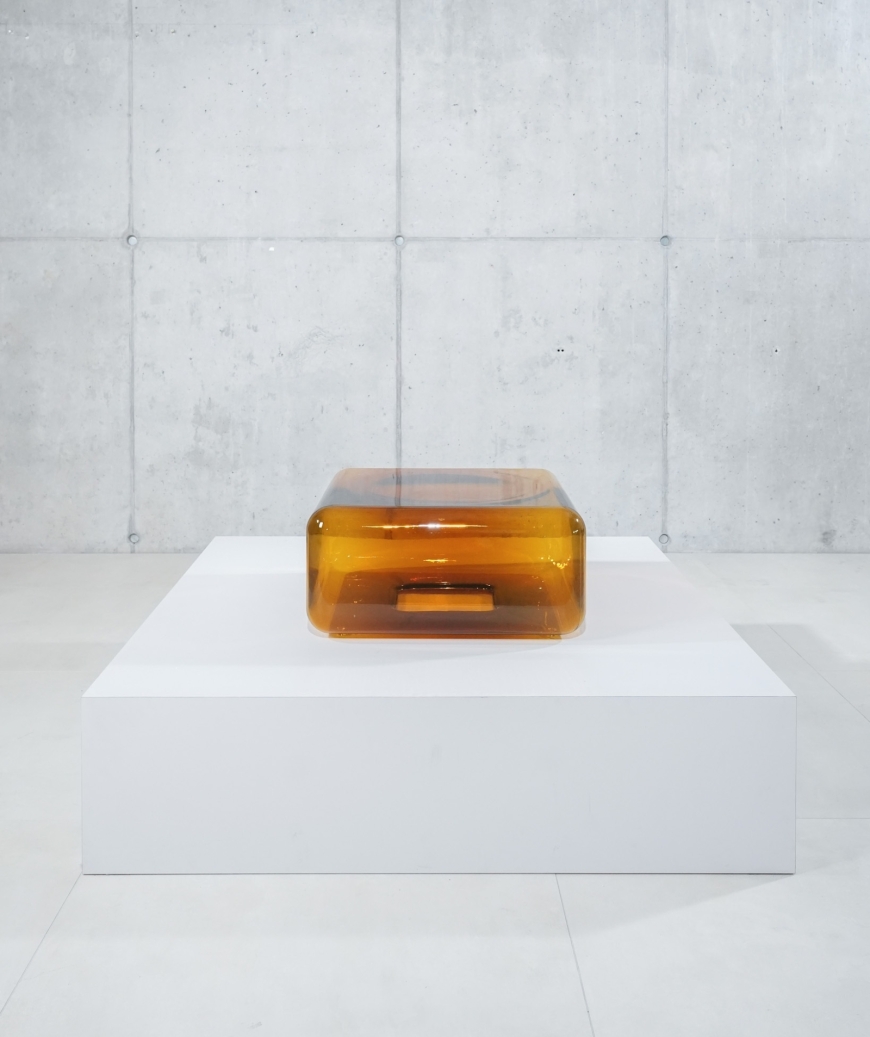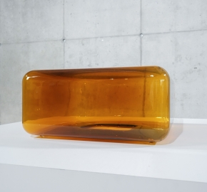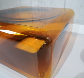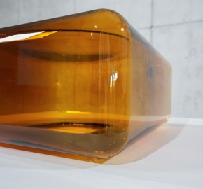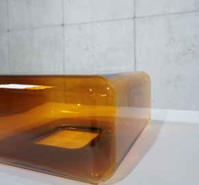 Lokum Coffee Table amber blown glass. De Lokum bijzettafel, ontworpen door Sabine Marcelis voor Acerbis in 2024, belichaamt een harmonieus samenspel van materie, licht en kleur. Deze collectie vangt de verfijning van minimalistische vormen, versterkt door het vakmanschap van geblazen glas. Marcelis, bekend om haar poëtische en nauwgezette gebruik van reflecterende oppervlakken en kleurnuances, heeft een collectie gecreëerd die een etherische charme uitstraalt en opmerkelijke interacties tussen licht en schaduw produceert.