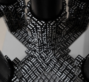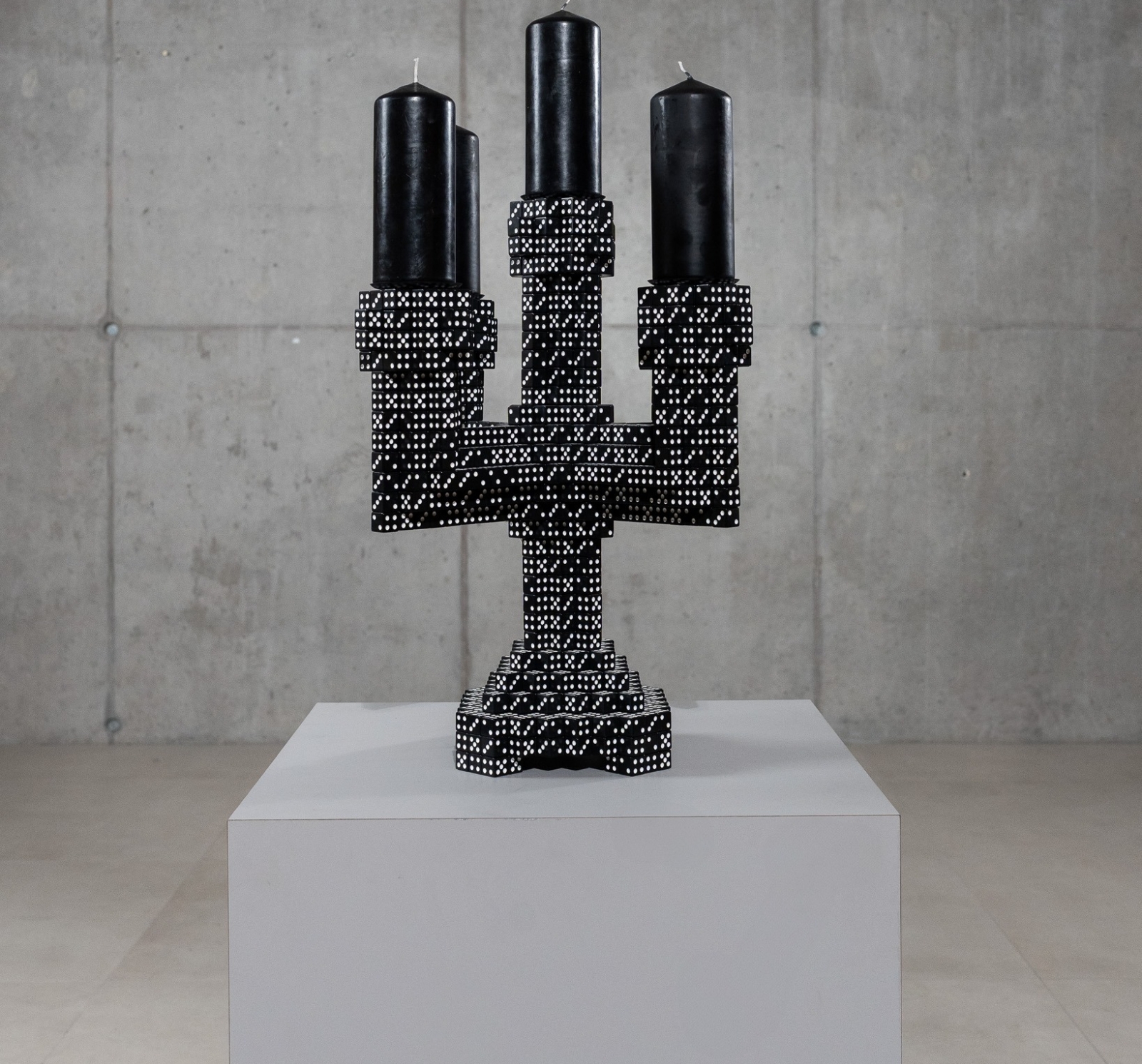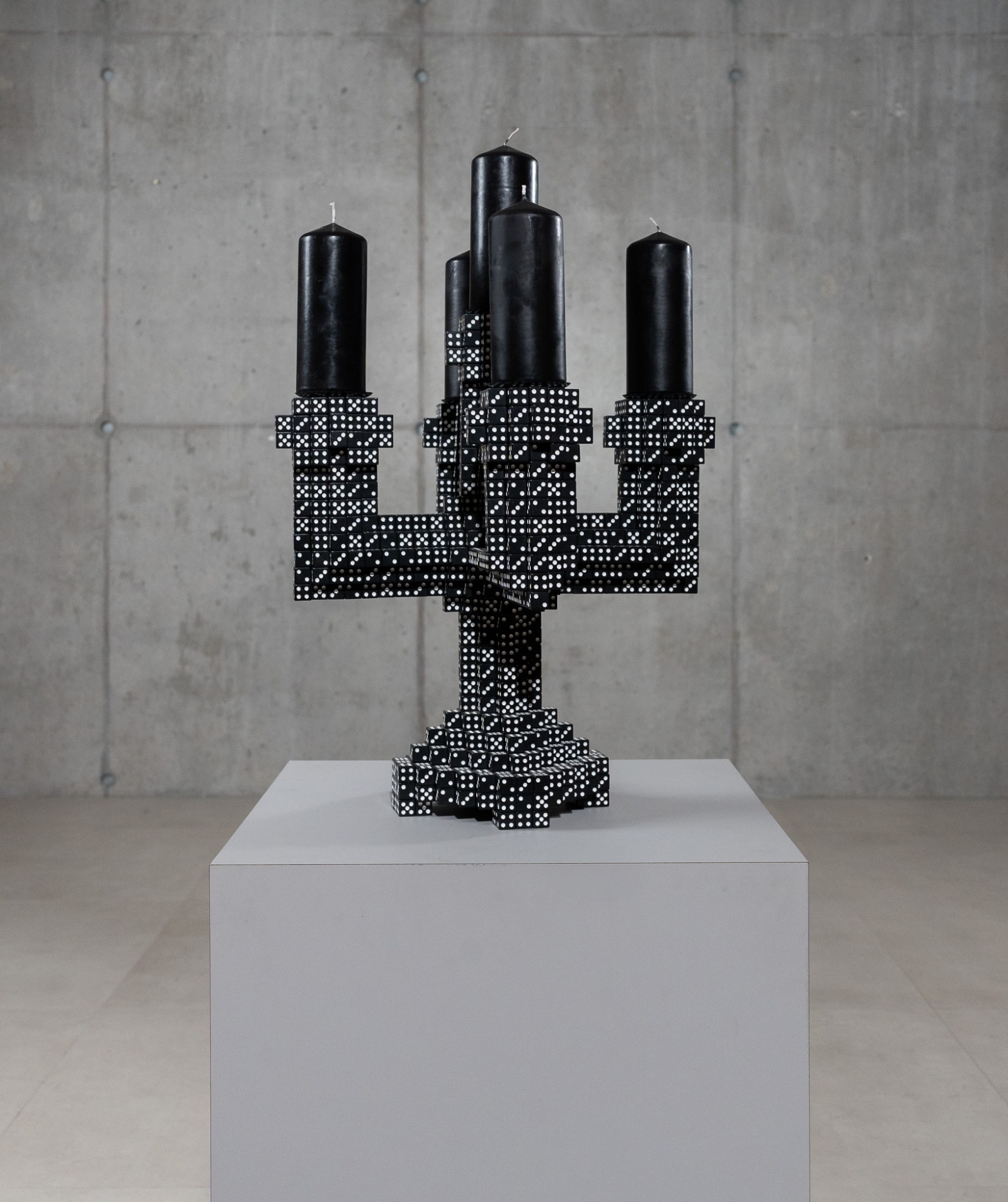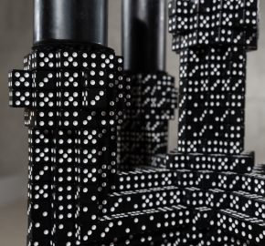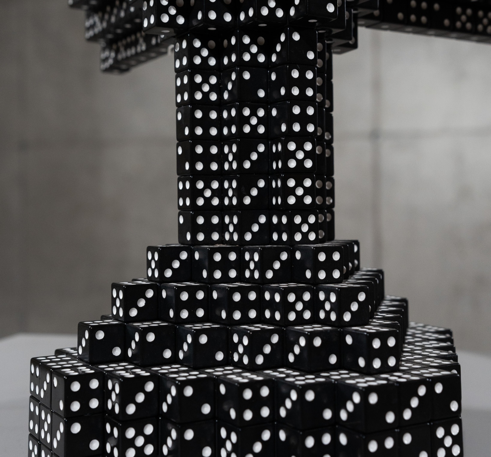 Opgebouwd uit gegoten dobbelstenen.