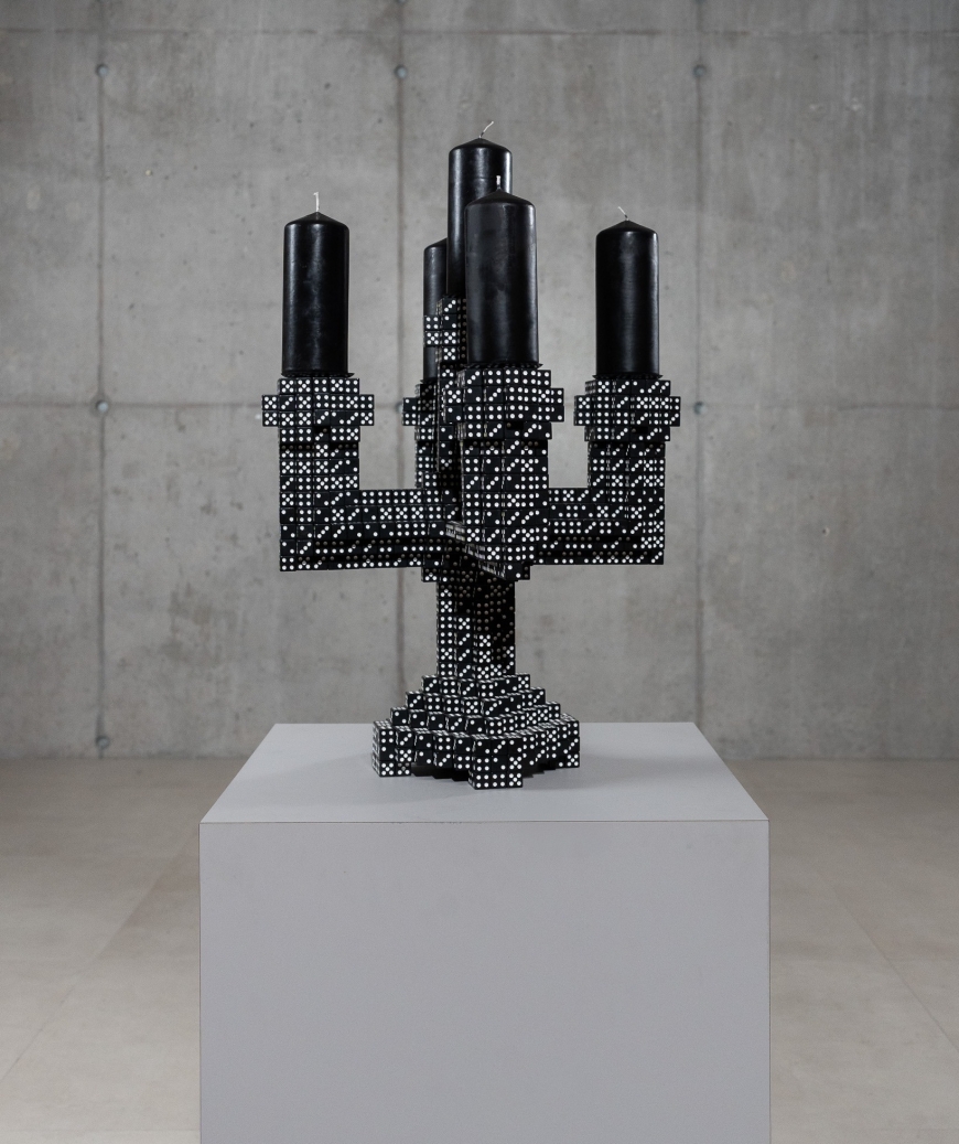De Lucky Dice Candelabra is ontworpen door Diederik Schneemann en maakt deel uit van zijn Lucky Dice-collectie. In deze serie vertaalt hij het concept van geluk naar objecten: hij gebruikt alleen dobbelstenen die een “zes” tonen als bouwsteen. Zo ontstaat een collectie sculpturale objecten waarin toeval en design samenkomen.