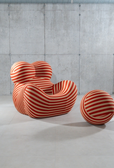 De Up serie is een van de meest iconische en provocerende meubelcollecties van B&B Italia, ontworpen door Gaetano Pesce in 1969. De collectie werd onmiddellijk erkend voor zijn avant-gardistische stijl en sociaal-politieke ondertoon. De Up5_6, beter bekend als de 'Donna', is het meest bekende stuk uit deze reeks en lijkt op een vrouwelijk figuur gevangen in een bolvormige ottoman, wat vaak wordt geïnterpreteerd als een statement over de onderdrukking van vrouwen.