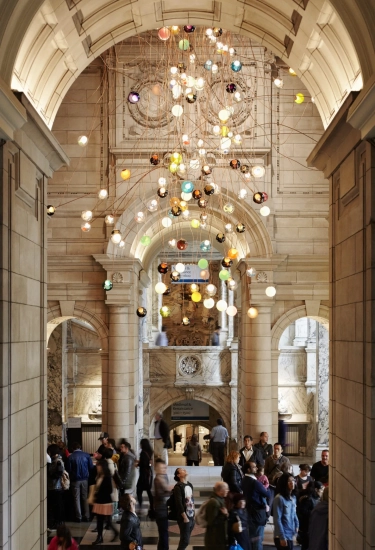 Grote clusters en installaties die worden afgestemd op de architectuur van een ruimte.