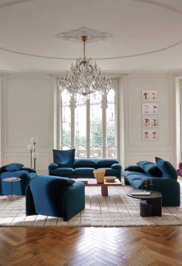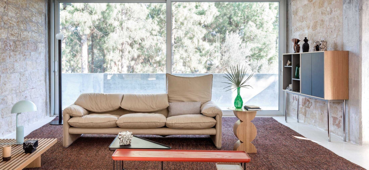 De Maralunga collectie biedt een breed scala aan zitoplossingen, van ruime banken tot comfortabele fauteuils, allemaal uitgerust met het kenmerkende verstelbare rugleuningmechanisme.