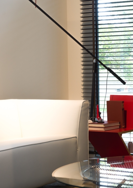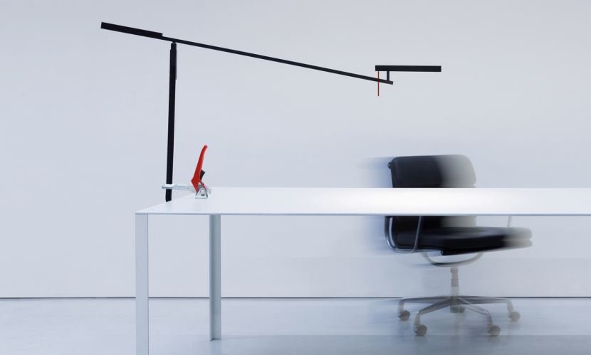 Een lamp die het klassieke thema van decentralisatie interpreteert. Een acrobatische en precaire aanwezigheid. Een lamp die licht brengt waar je het wilt, met een stopcontact als beginpunt. De in 2014 ontworpen lamp is een echte blikvanger door het gebruik van een contraballast, en heeft zowel een up- als een downlight.