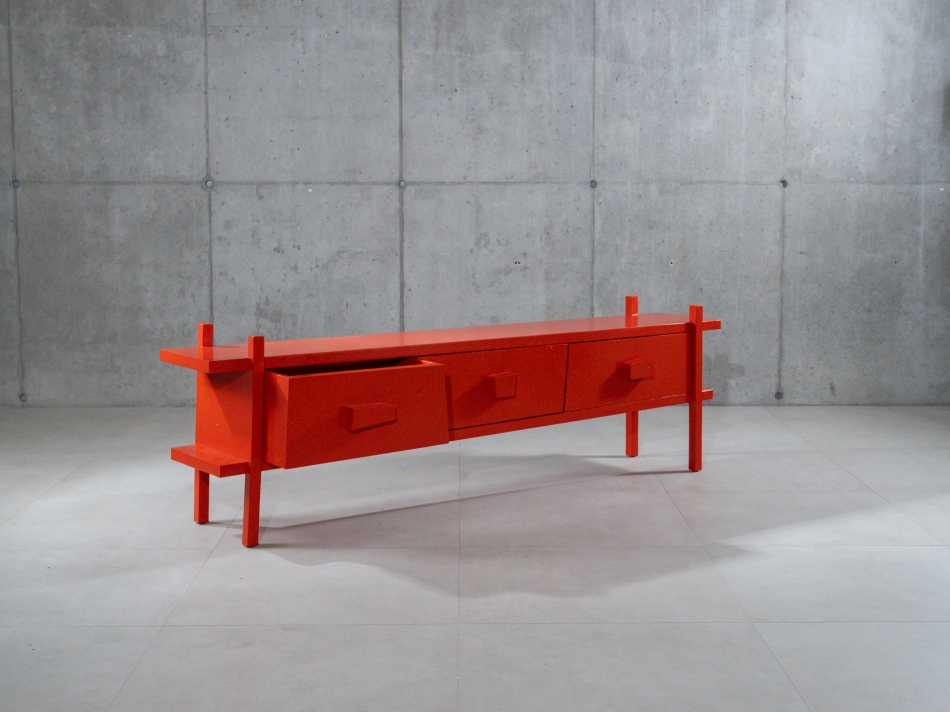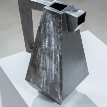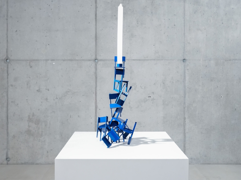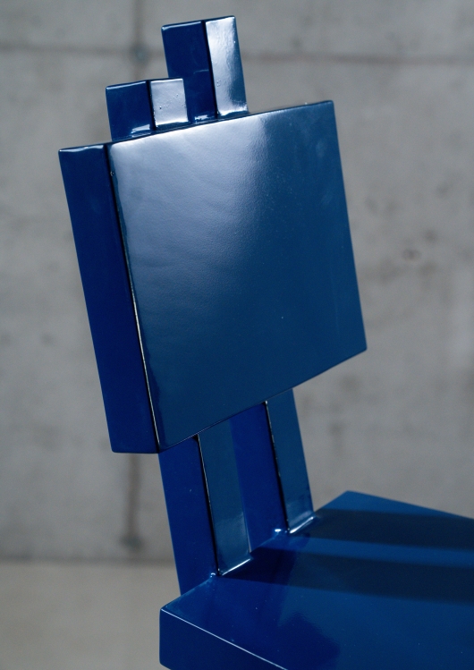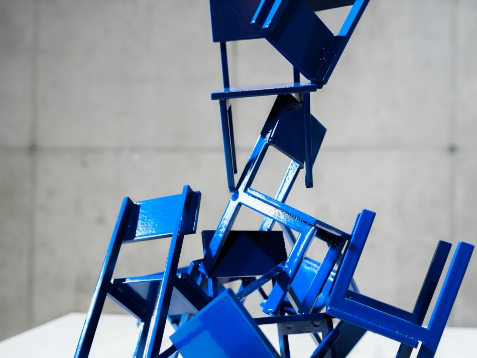 Sculpturale objecten gebaseerd op gestapelde stoelvormen, uitgevoerd in gecoat staal en bedoeld als functioneel accessoire met een uitgesproken ruimtelijke aanwezigheid.