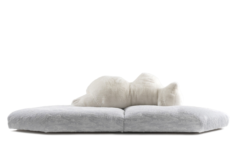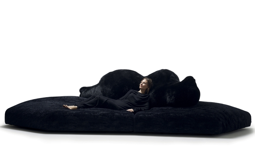 De Pack serie, ontworpen door Francesco Binfaré, biedt een unieke en speelse benadering van zitmeubilair. De basis, vormgegeven als een ijsschots, en de rugleuning, in de vorm van een liggende beer, creëren samen een ongekend comfortniveau en een opvallend visueel statement. De zitting is gevuld met Gellyfoam® en veren, en bedekt met een speciaal stof dat lijkt op ijslagen. De rugleuning, gemaakt van polyester en bedekt met ecologische bont, is mobiel, intern verzwaard en heeft een antisliplaag aan de onderkant. De onregelmatige vorm van de basis, hoewel in een rechte hoek, biedt de ruimte van zowel een tweezitsbank als een driezitsbank in een hoekopstelling.