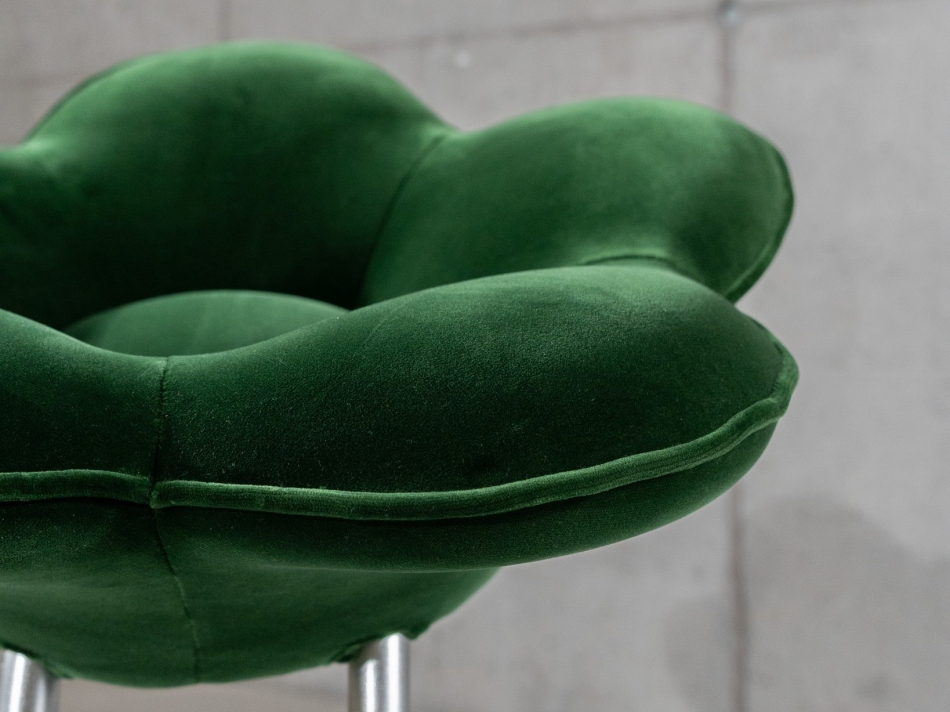 De bloemblaadjes, die de vulling vormen en de zitting gastvrij maken, worden stuk voor stuk gemaakt. Het frame is van gevormd metaal met kleine onderdelen van gevormd hout. Fluweel bedekt in de kleuren van de collectie.