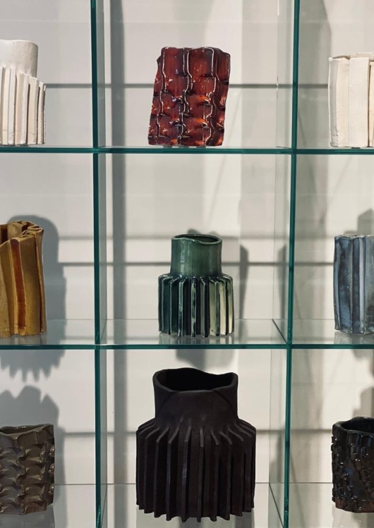 De keramische stukken van Floris Wubben tonen de wisselwerking tussen machines en mensen. Door middel van de kunst van extrusie maakt Wubben gebruik van de kracht van toegepaste druk en mechanische processen om een scala aan keramiek in boeiende composities te creëren. Dit unieke kunstenaarschap verweeft handmatige en mechanische methoden met elkaar, waardoor elk stuk een product is van gecombineerde inspanningen.
