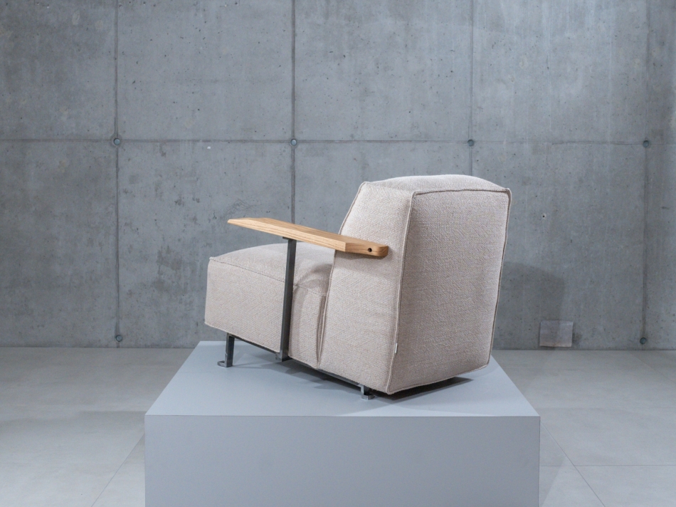De strakke lijnen en het gebruik van massief hout in combinatie met hoogwaardige stoffering benadrukken de eenvoud en elegantie van het ontwerp. De toevoeging van persoonlijke opties in stoffering en afwerking stelt gebruikers in staat om een uniek meubelstuk te creëren dat perfect aansluit bij hun individuele smaak en behoeften.