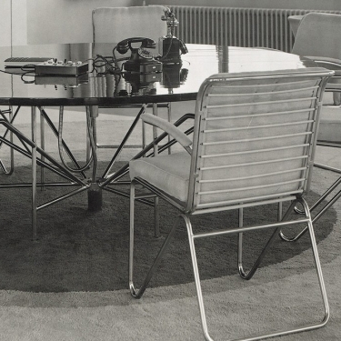Een klassieker uit de Nederlandse designgeschiedenis: licht, transparant en technisch verfijnd. De stoel die het modernisme in Nederland mede vormgaf.