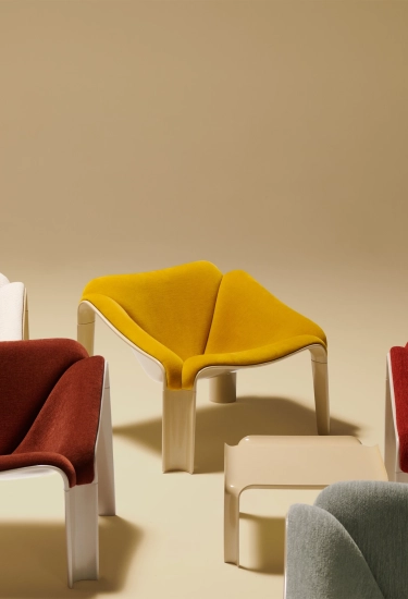 Een organische loungefauteuil uit de jaren ’70, heruitgebracht door GUBI. Pacha staat voor comfort zonder rigiditeit en laat zien hoe het merk radicale vormen uit het verleden opnieuw relevant maakt.