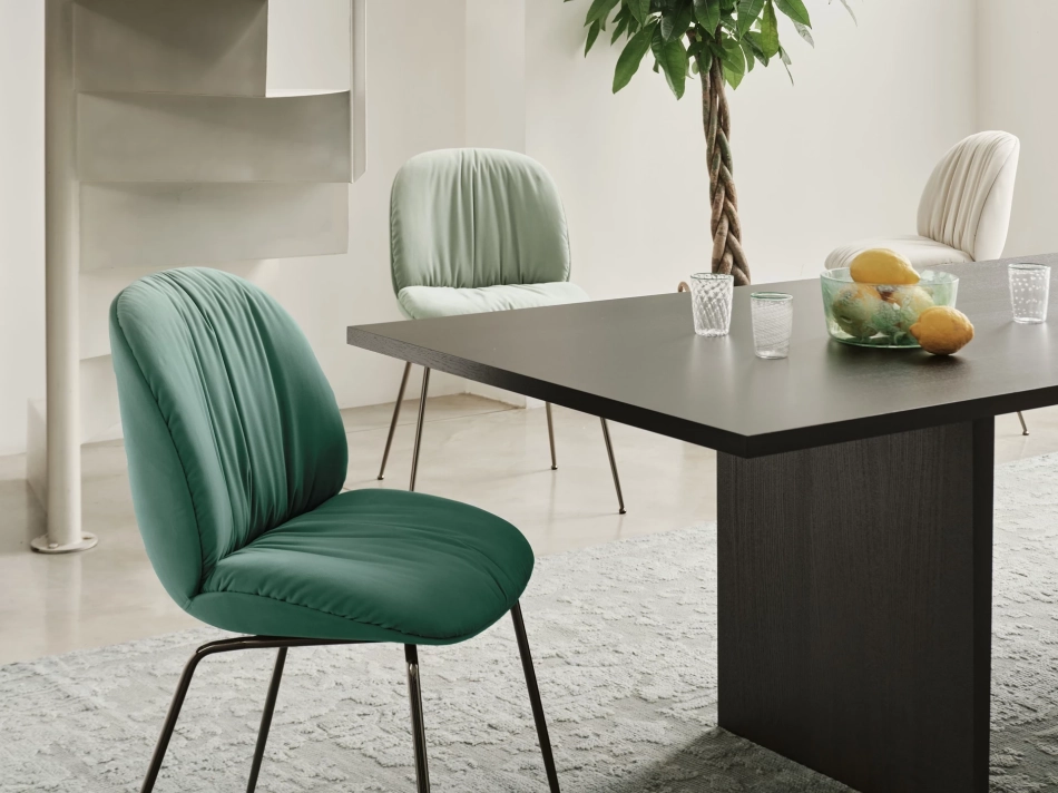 Een stoel die biomimicry subtiel vertaalt naar comfort en elegantie. De afgeronde rug en zitting zorgen voor een uitnodigende vorm die in verschillende interieurs moeiteloos past.
