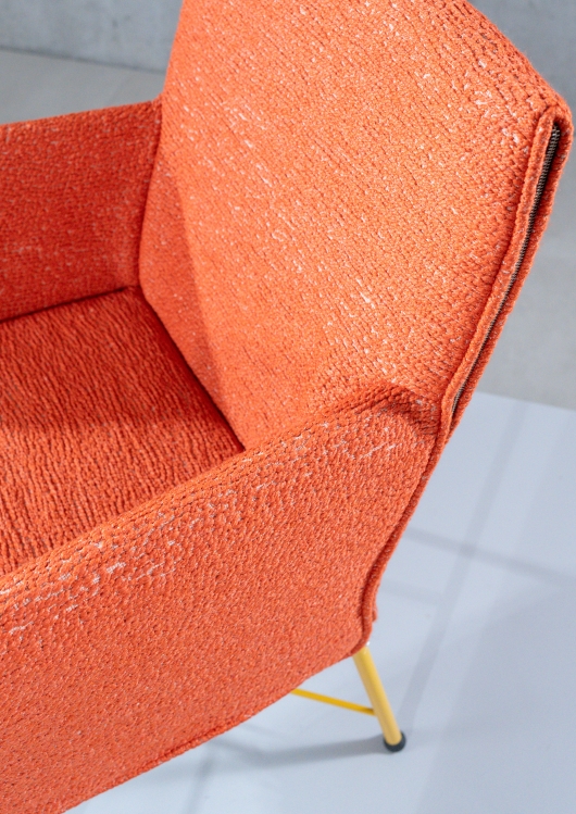 De stoffering van Chaplin bekleedt het onderstel als een kledingstuk. De hoes drapeert nonchalant als een gewatteerde ‘jas’ en wordt door vier ritsen gesloten. De stoelen lenen zich uitstekend voor een comfortabele eethoek of gespreksruimte.
