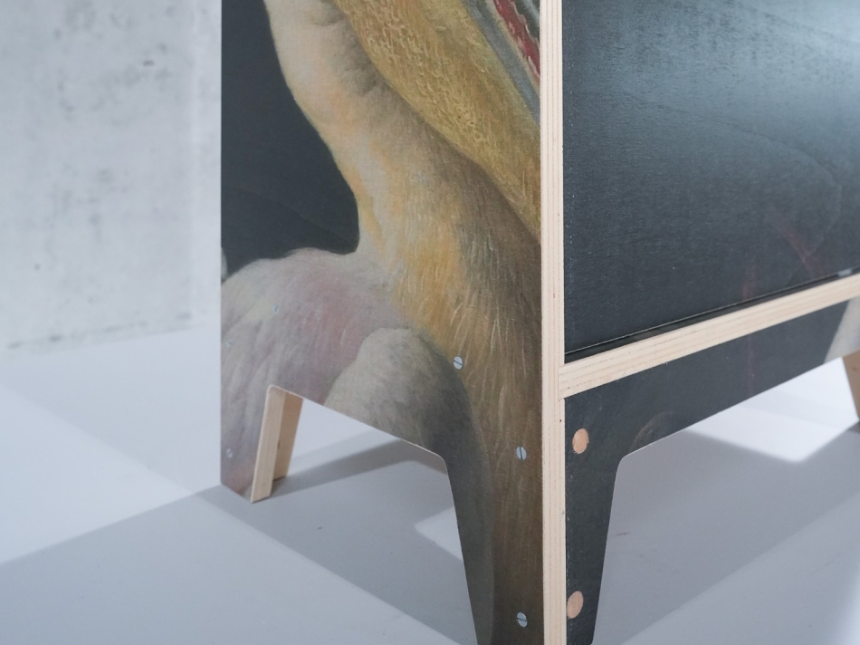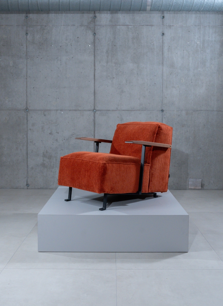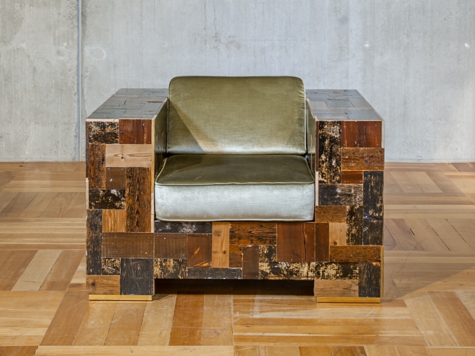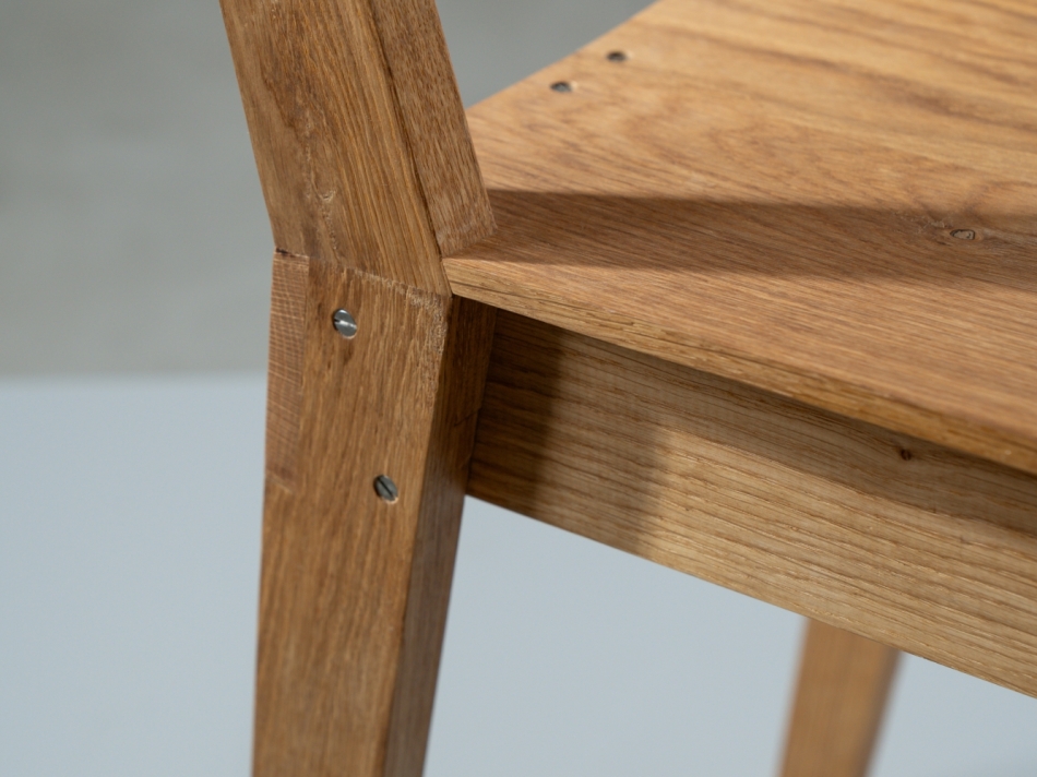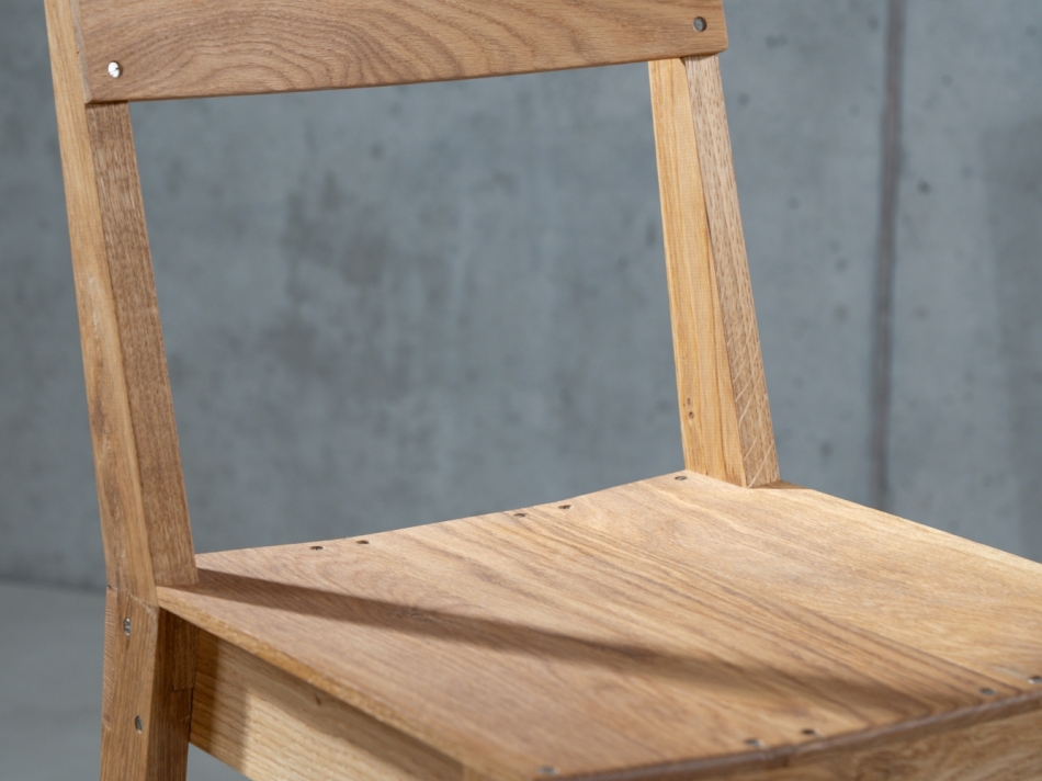 Stoelen: de Eiken stoel in sloophout en de Crisis Stoel, zijn voorbeelden van innovatief design. De Eiken stoel in sloophout combineert elementen van tafel en stoel in één enkel meubelstuk, wat een praktische maar unieke benadering van meubeldesign is.