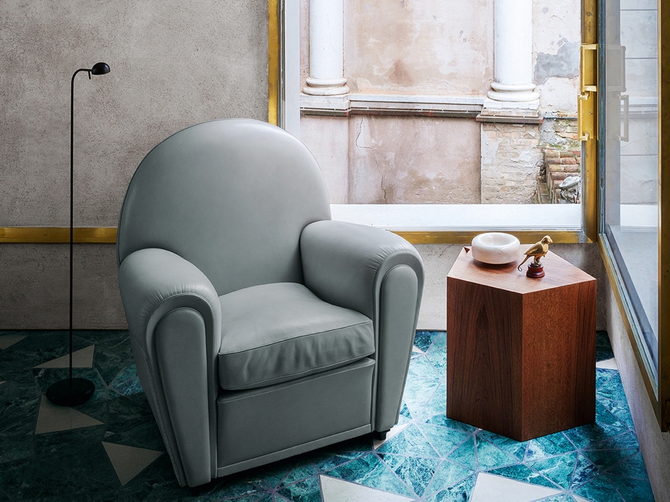 Een sculpturale fauteuil met zachte vormen en een diepe zit. De combinatie van Pelle Frau®-leder en een vloeiend lijnenspel maakt Archibald tot een favoriet binnen hedendaagse interieurprojecten.