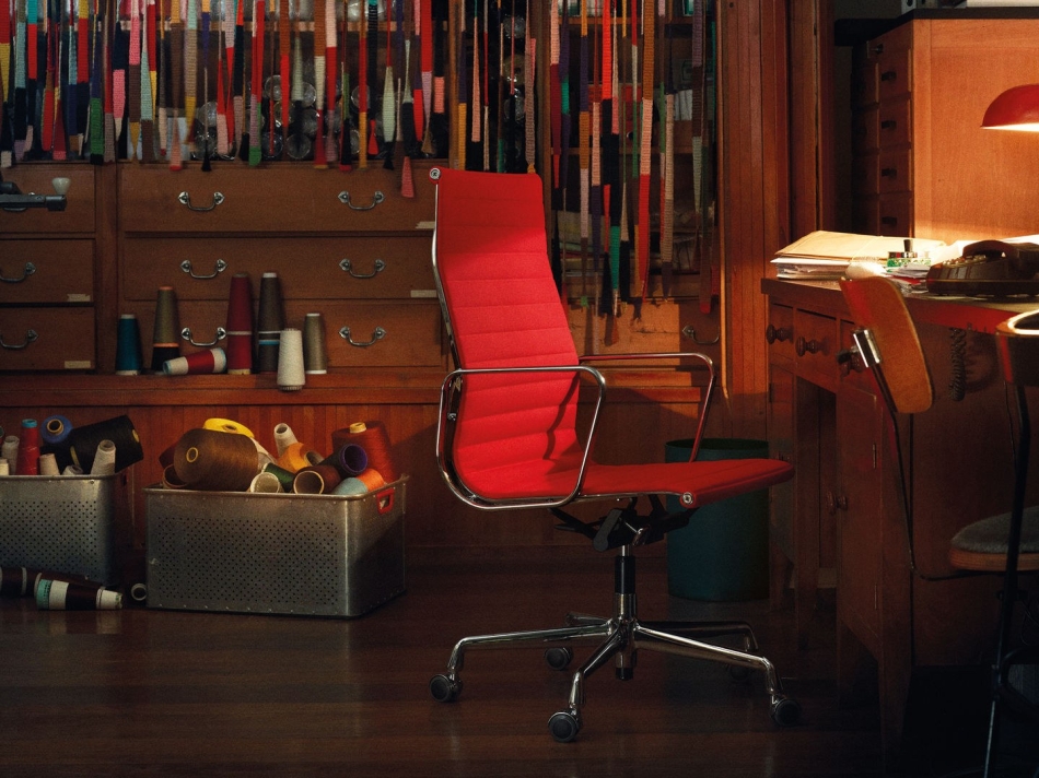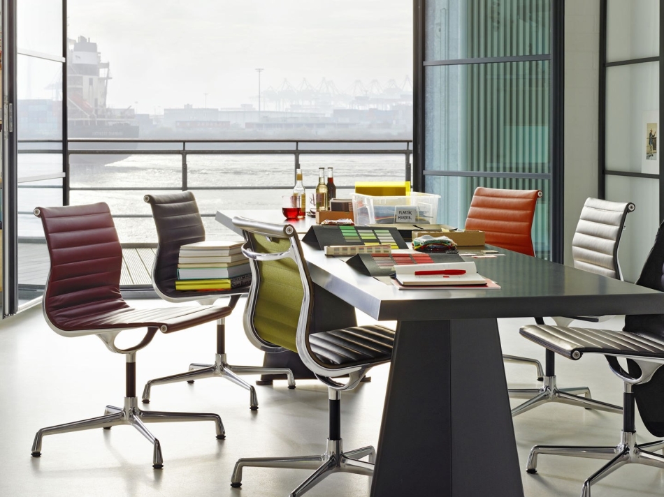 - EA 115 / EA 116 / EA 117: Bureaustoelen met verstelbare zithoogte en kantelmechanisme, beschikbaar in diverse materialen en kleuren.